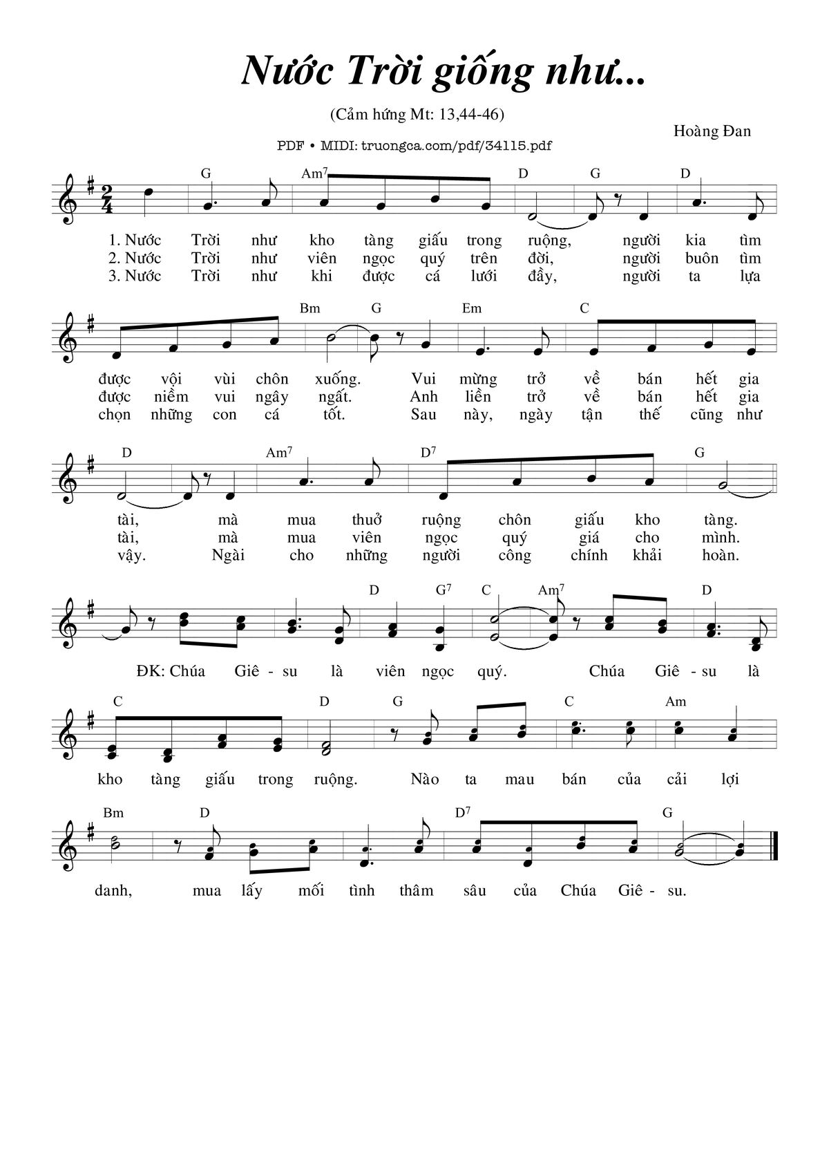 Điệp khúc: Chúa Giê-su là viên ngọc quý. Chúa Giê-su là kho tàng giấu trong ruộng.