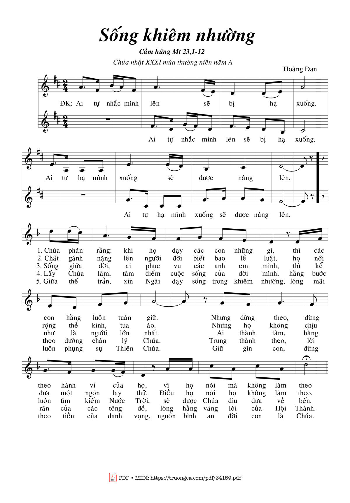 Điệp khúc: Ai tự nhắc mình lên, sẽ bị hạ xuống. Ai tự hạ mình xuống, sẽ được nâng lên.