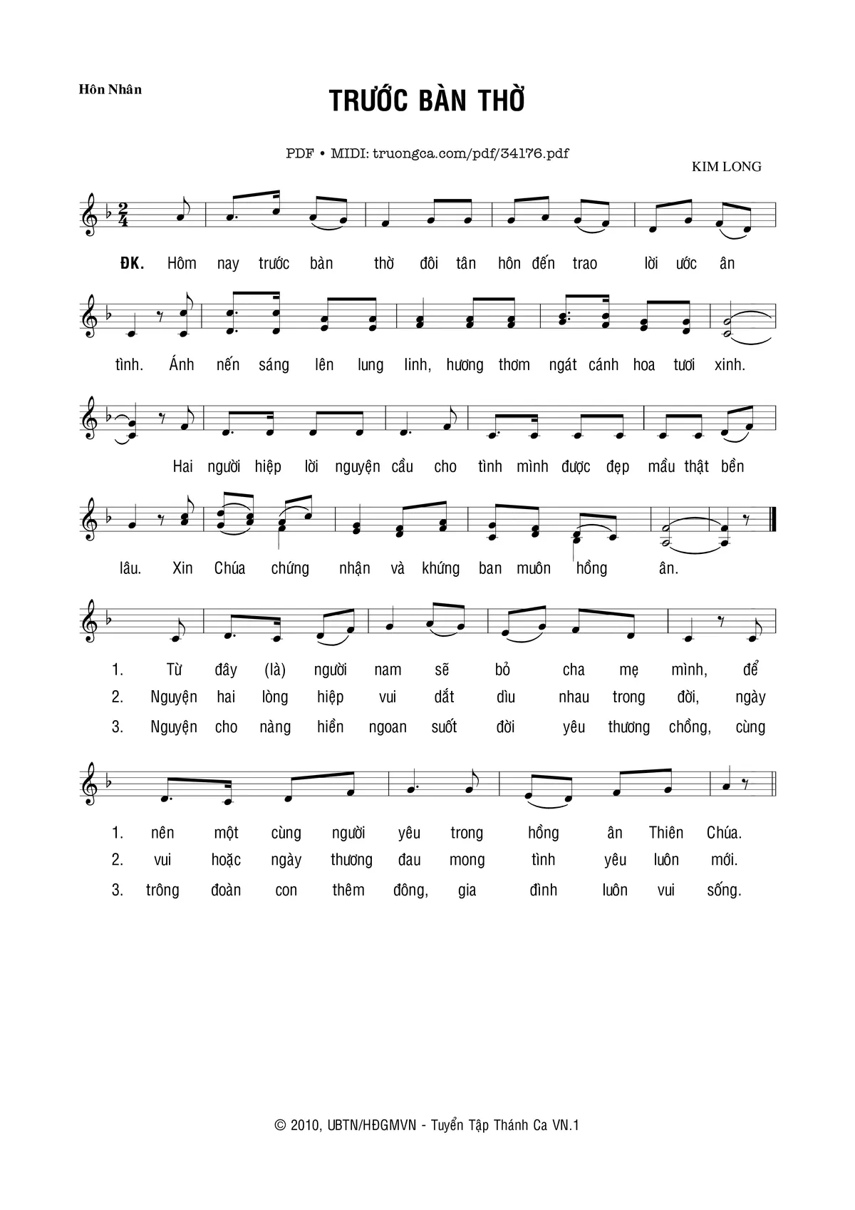Kim Long Hôm nay trước bàn thờ đôi tân hôn đến trao lời ước ân tình [PDF] [Sheet] [Lời H.A] [Mp4/Midi]
