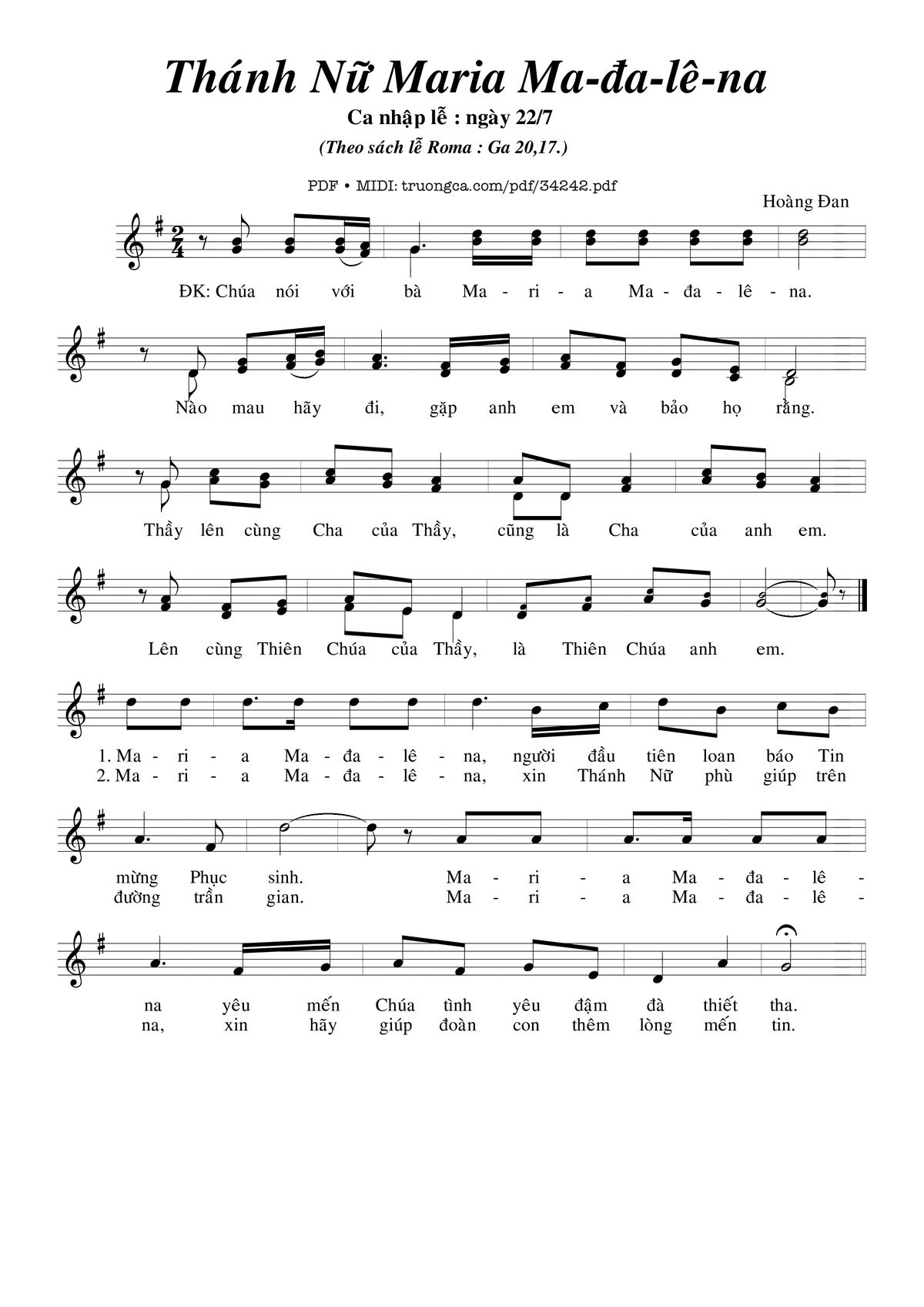 Điệp khúc: Chúa nói với bà ma-ri-a Ma-đa-lê-na. Nào mau hãy đi gặp anh em và bảo họ