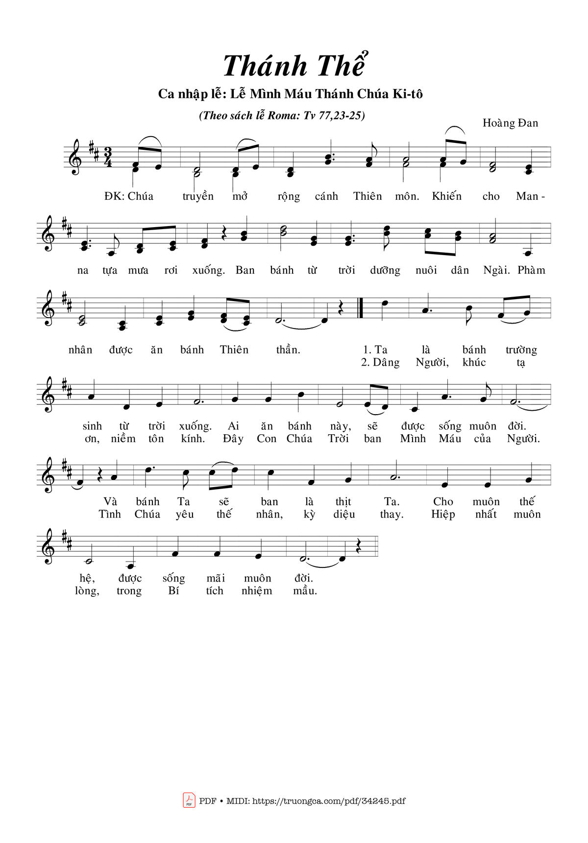 Chọn nút dấu + để tăng tông lên nửa cung, nút dấu - để giảm tông xuống nửa cung. Rê chuột vào hợp âm để xem các thế bấm hợp âm của bài hát Thánh Thể.