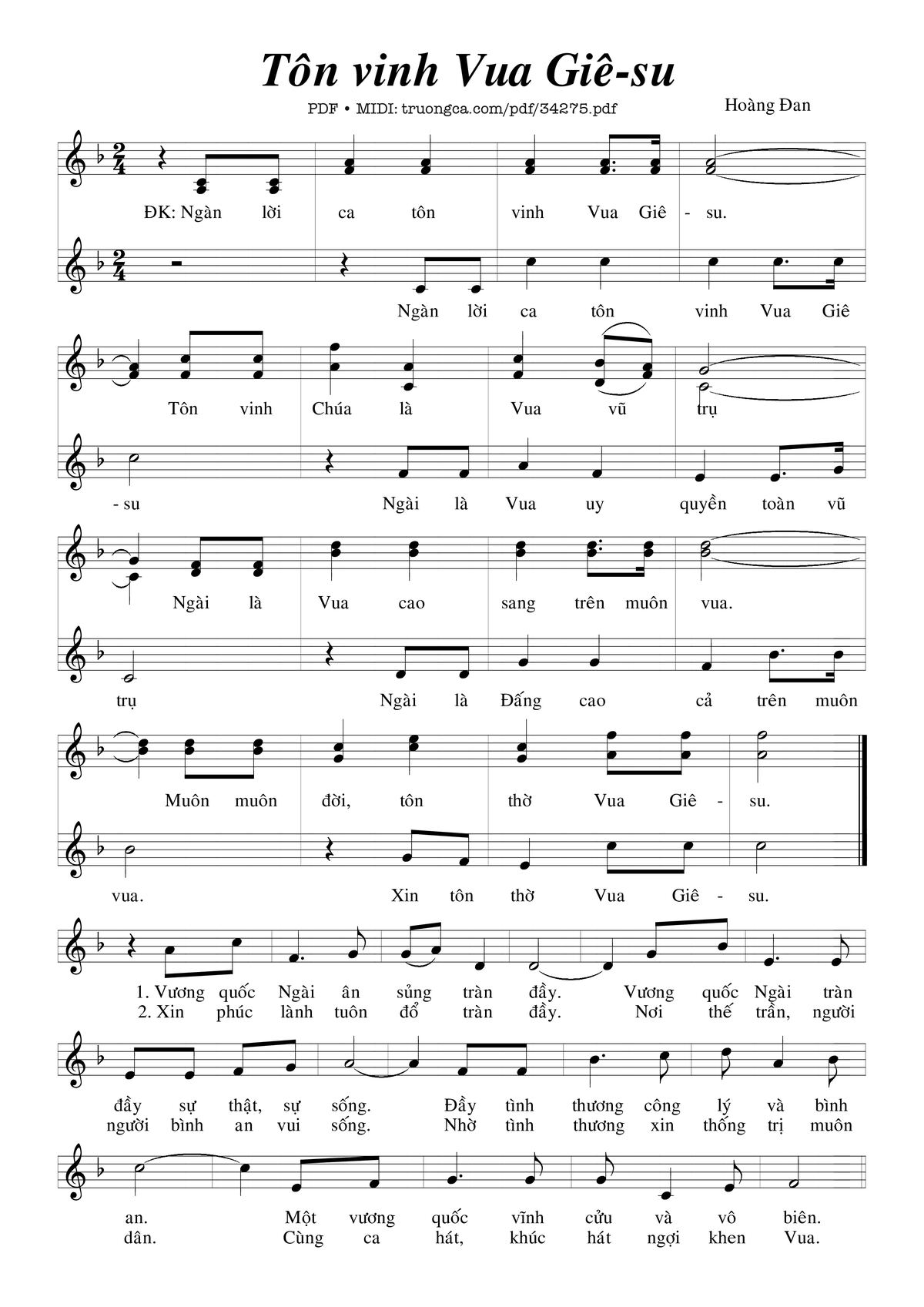 Điệp khúc: Ngàn lời ca tôn vinh Vua Giê-su. Tôn vinh Chúa là Vua vũ trụ.