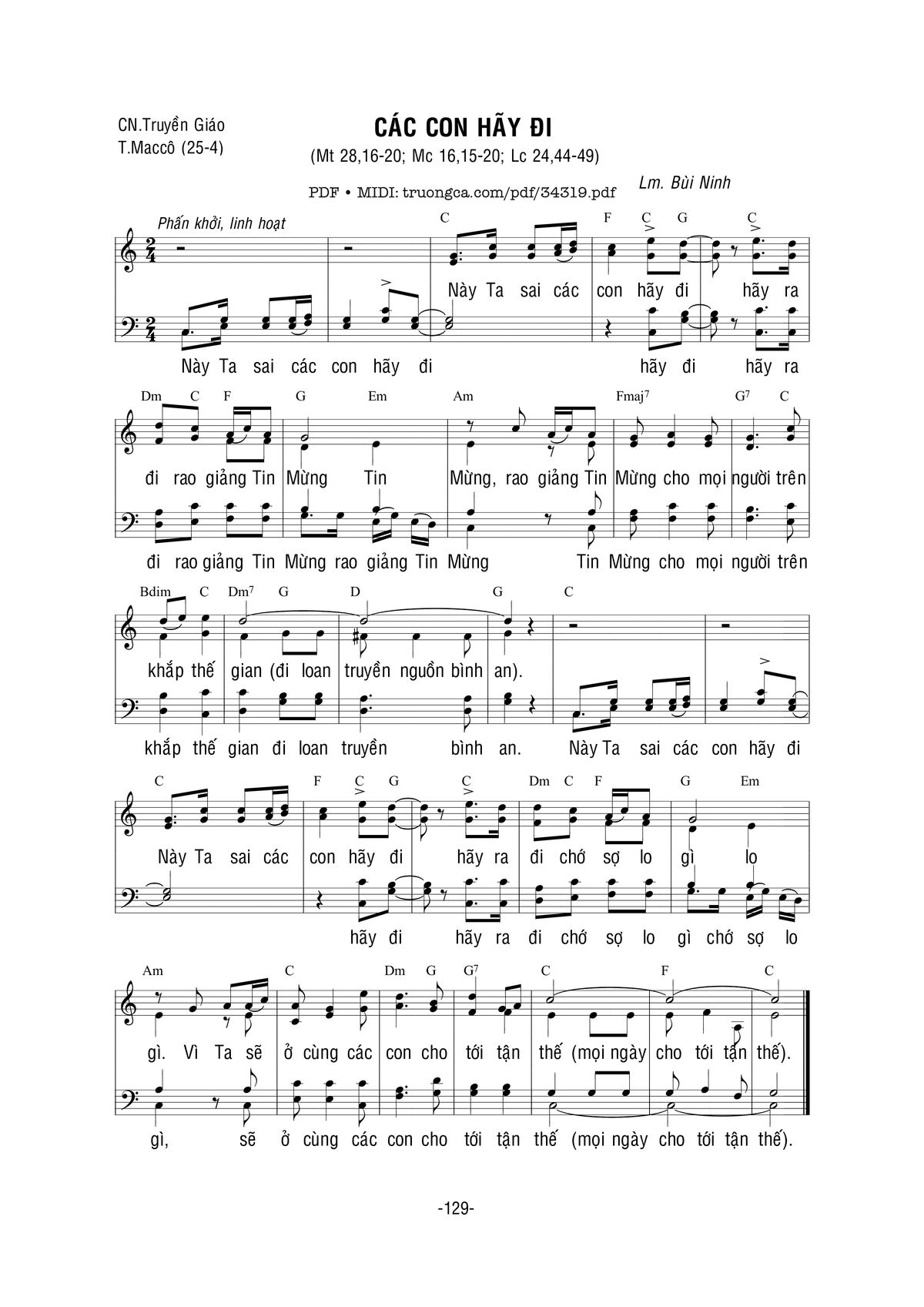 Bùi Ninh Này Ta sai các con hãy đi hãy ra đi rao giảng Tin Mừng [PDF] [Sheet] [Lời H.A] [Mp4/Midi]