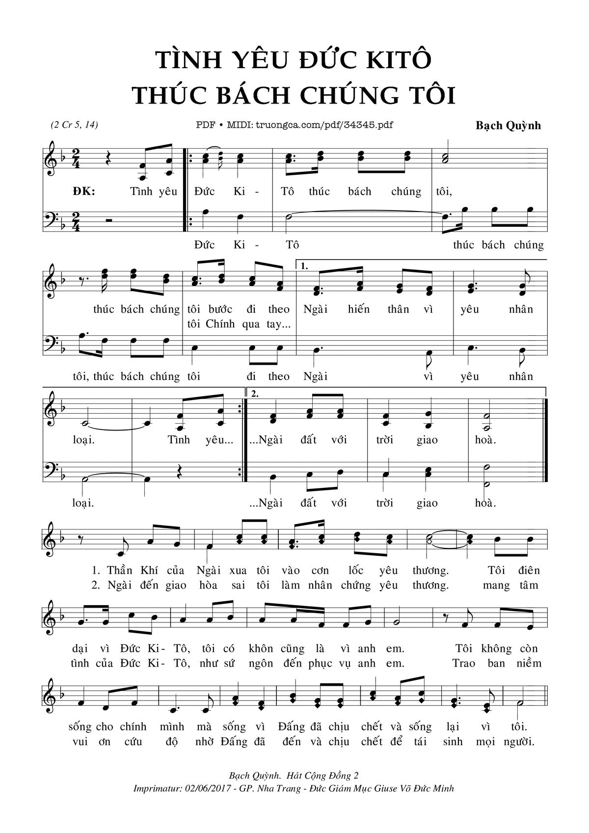 Bạch Quỳnh Tình yêu Đức Kitô thúc bách chúng tôi thúc bách chúng tôi bước đi theo Ngài hiến thân vì yêu nhân loại [PDF] [Sheet] [Lời H.A] [Mp4/Midi]
