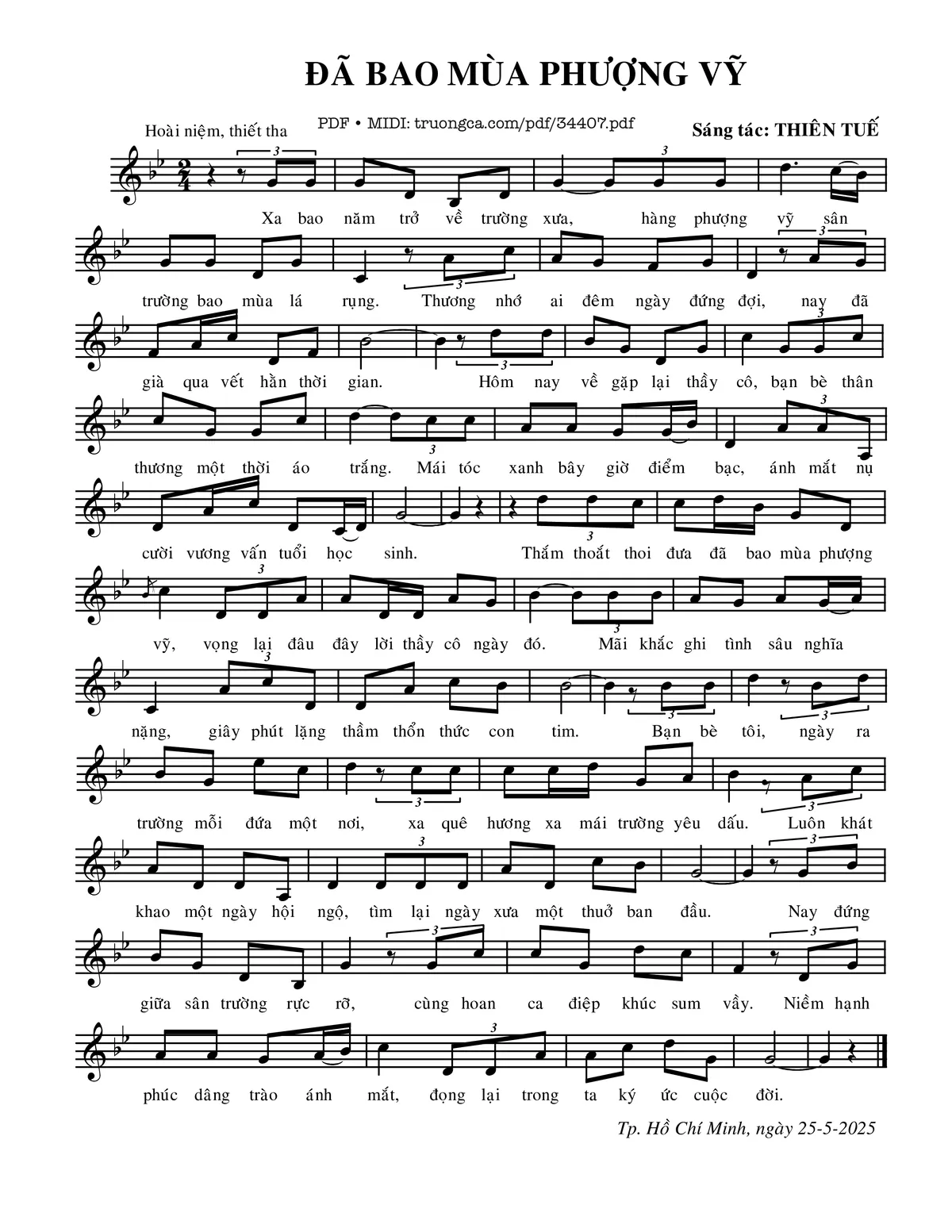 Thiên Tuế Xa bao năm trở về trường xưa Hàng phượng vỹ sân trường bao mùa lá rụng [PDF] [Sheet] [Lời H.A] [Mp4/Midi]