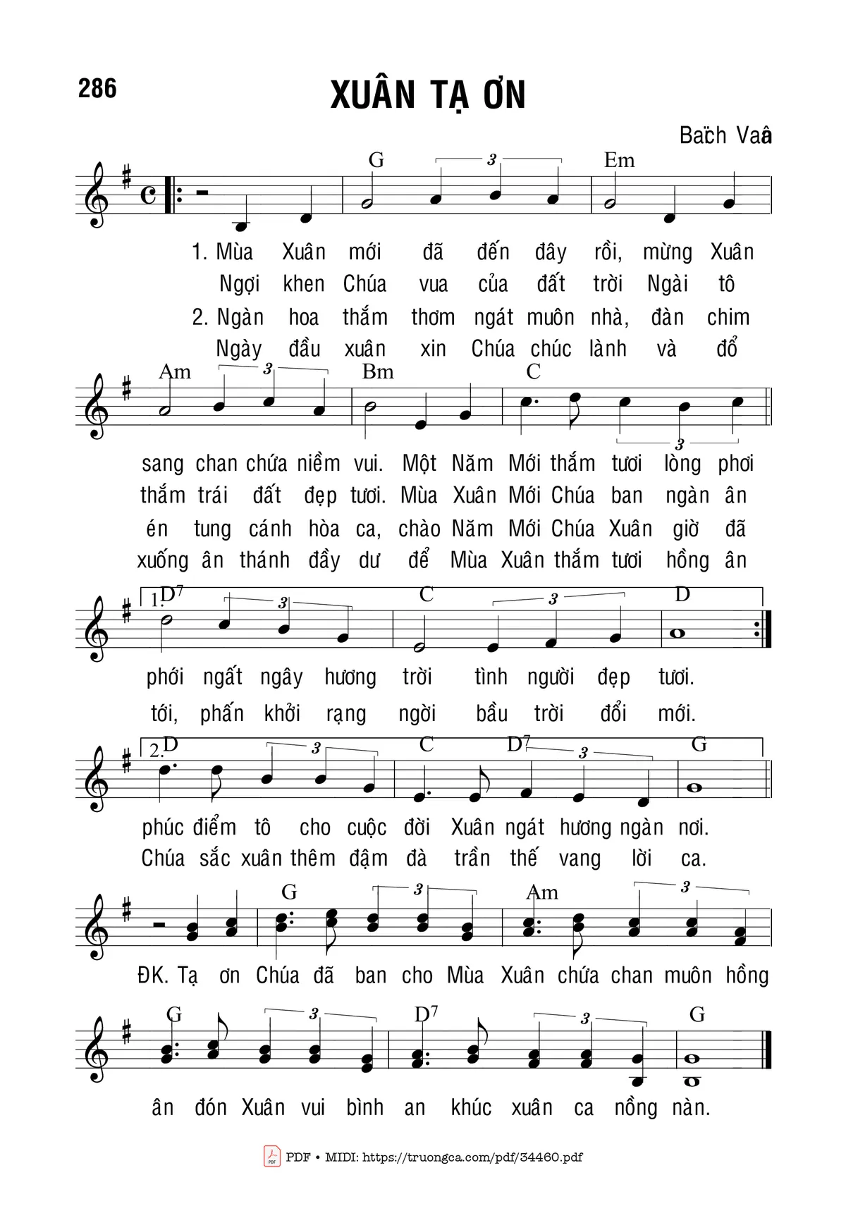 Các sheet PDF cùng tên Xuân Tạ Ơn: