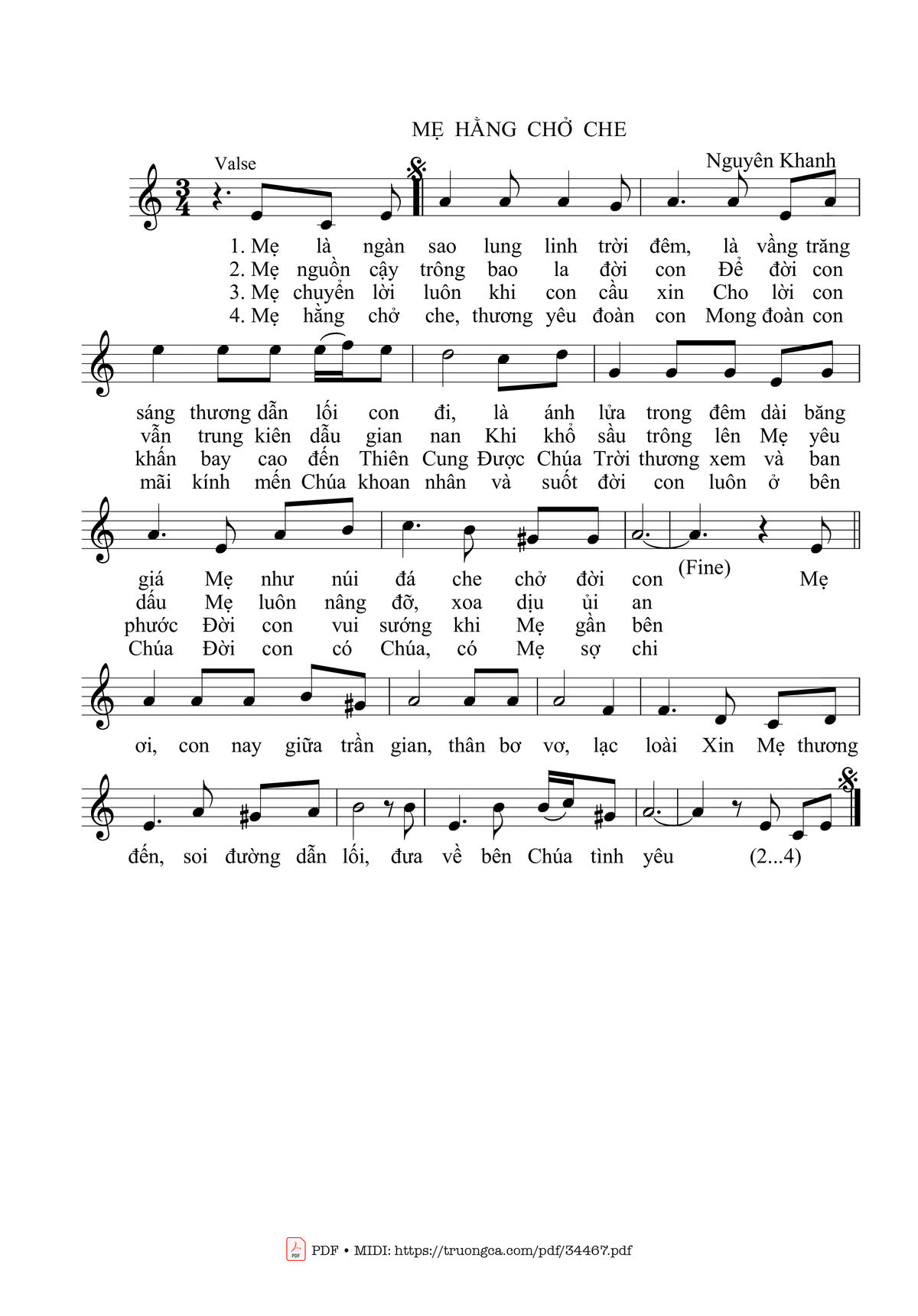 Nguyên Khanh Mẹ là ngàn sao lung linh trời đêm Là vầng trăng sáng thương dẫn lối con đi [PDF] [Sheet] [Lời H.A] [Mp4/Midi]
