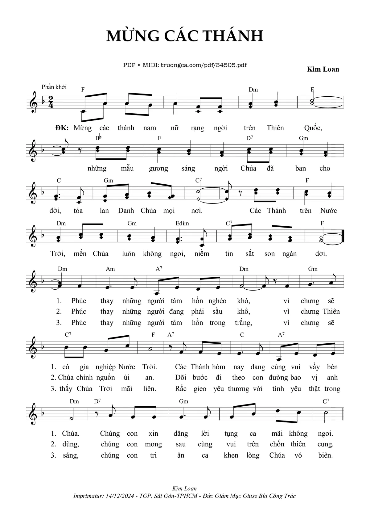 Các sheet PDF cùng tên Mừng Các Thánh:
