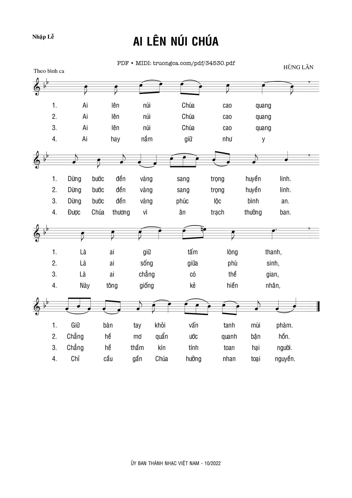 Hùng Lân Ai lên núi Chúa cao quang dừng bước đền vàng sang trọng huyền linh [PDF] [Sheet] [Lời H.A] [Mp4/Midi]