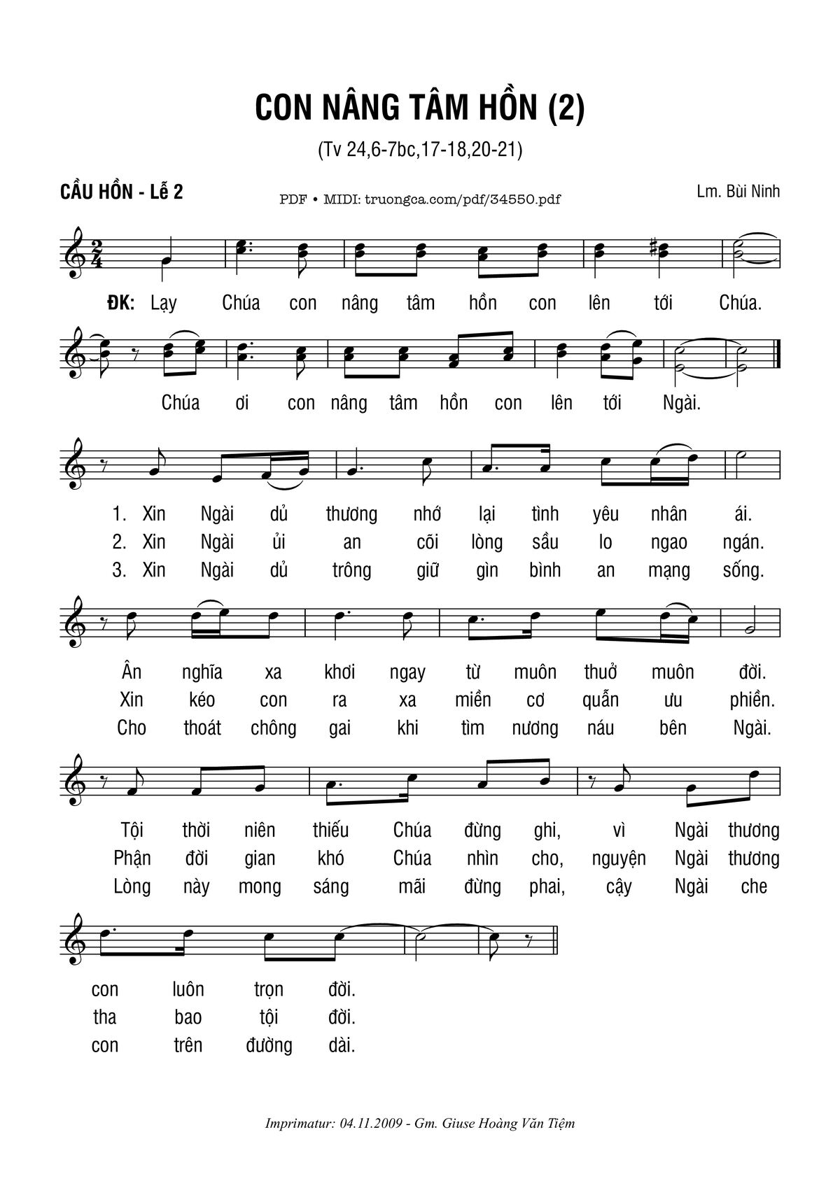 🌾 Imprimatur, Thông tin chuẩn nhận dùng trong phụng vụ Công Giáo: Đáp Ca – Lễ Cầu Hồn 2. Imprimatur: GP. Bùi Chu – 04.11.2009 – GM. Giuse Hoàng Văn Tiệm