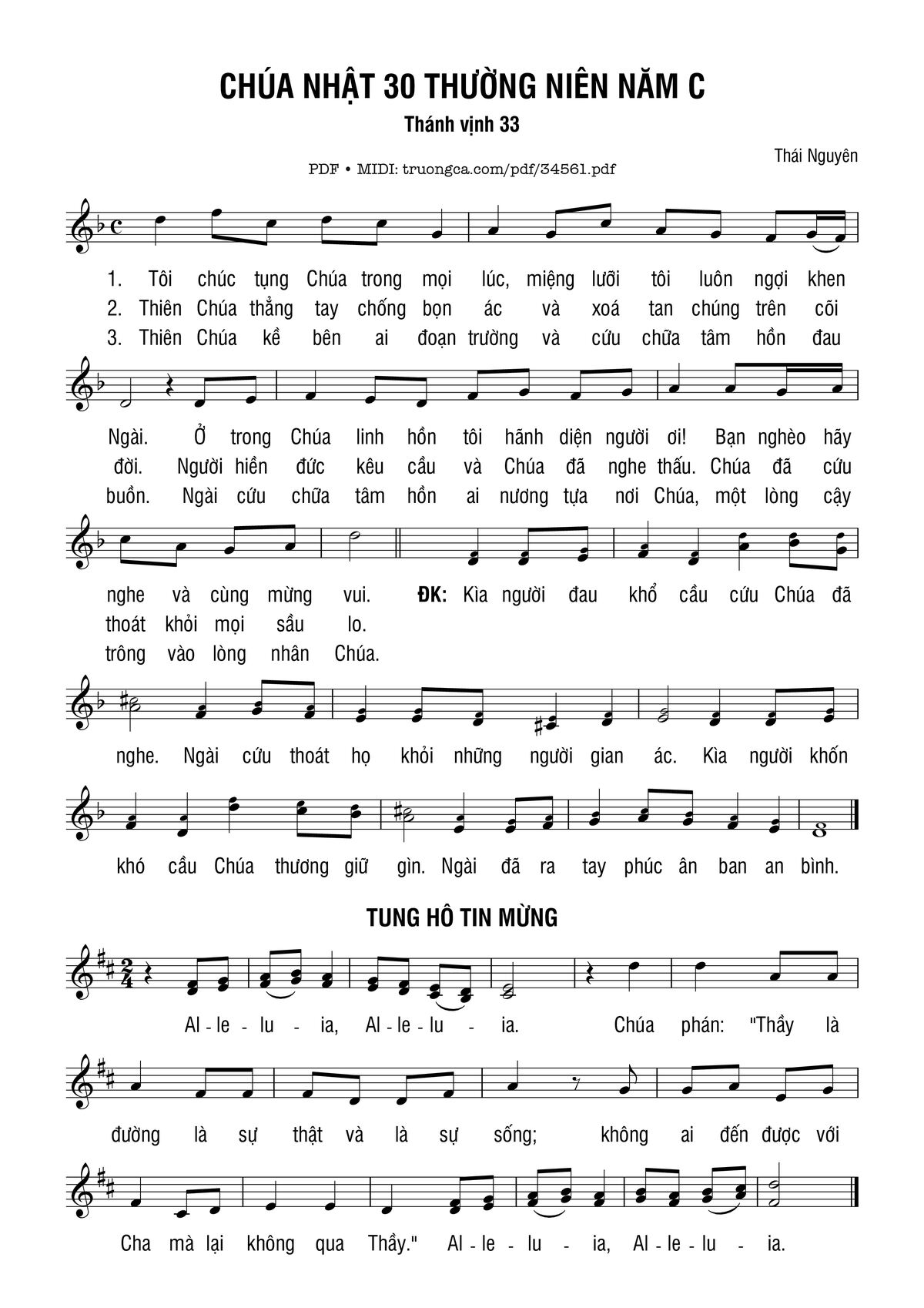 Các sheet PDF cùng tên Thánh Vịnh 33, Chúa Nhật 30C Thường Niên:
