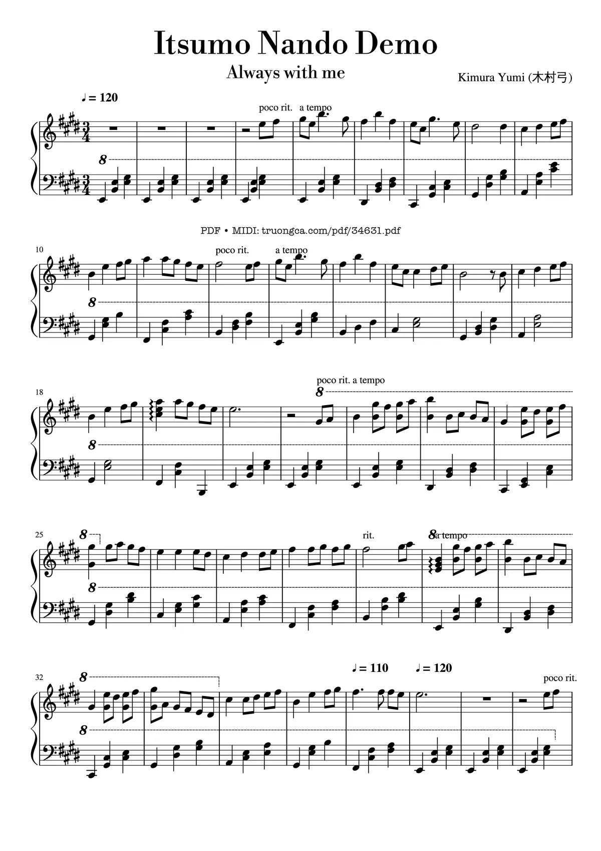 Các sheet PDF tương tự Itsumo Nando Demo - Always with me Piano: