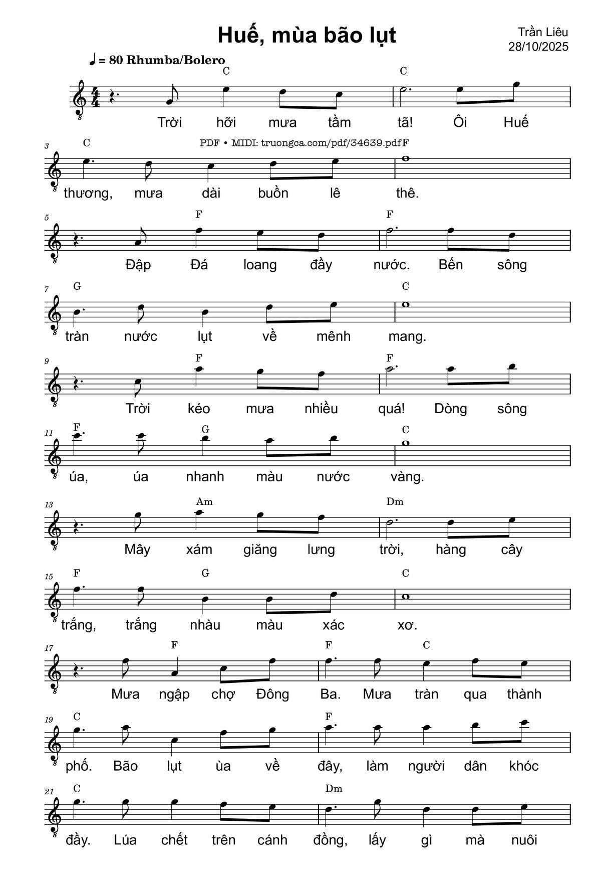 Trần Liêu Trời hỡi mưa tầm tã Ôi Huế thương mưa dài buồn lê thê [PDF] [Sheet] [Lời H.A] [Mp4/Midi]