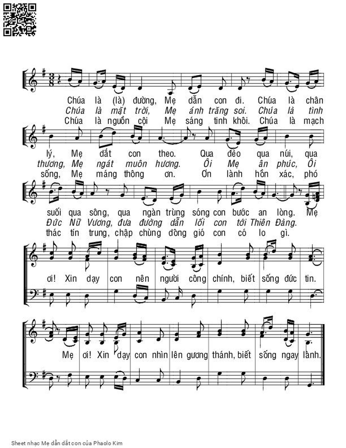 Câu đầu: Chúa là là đường Mẹ dẫn con đi