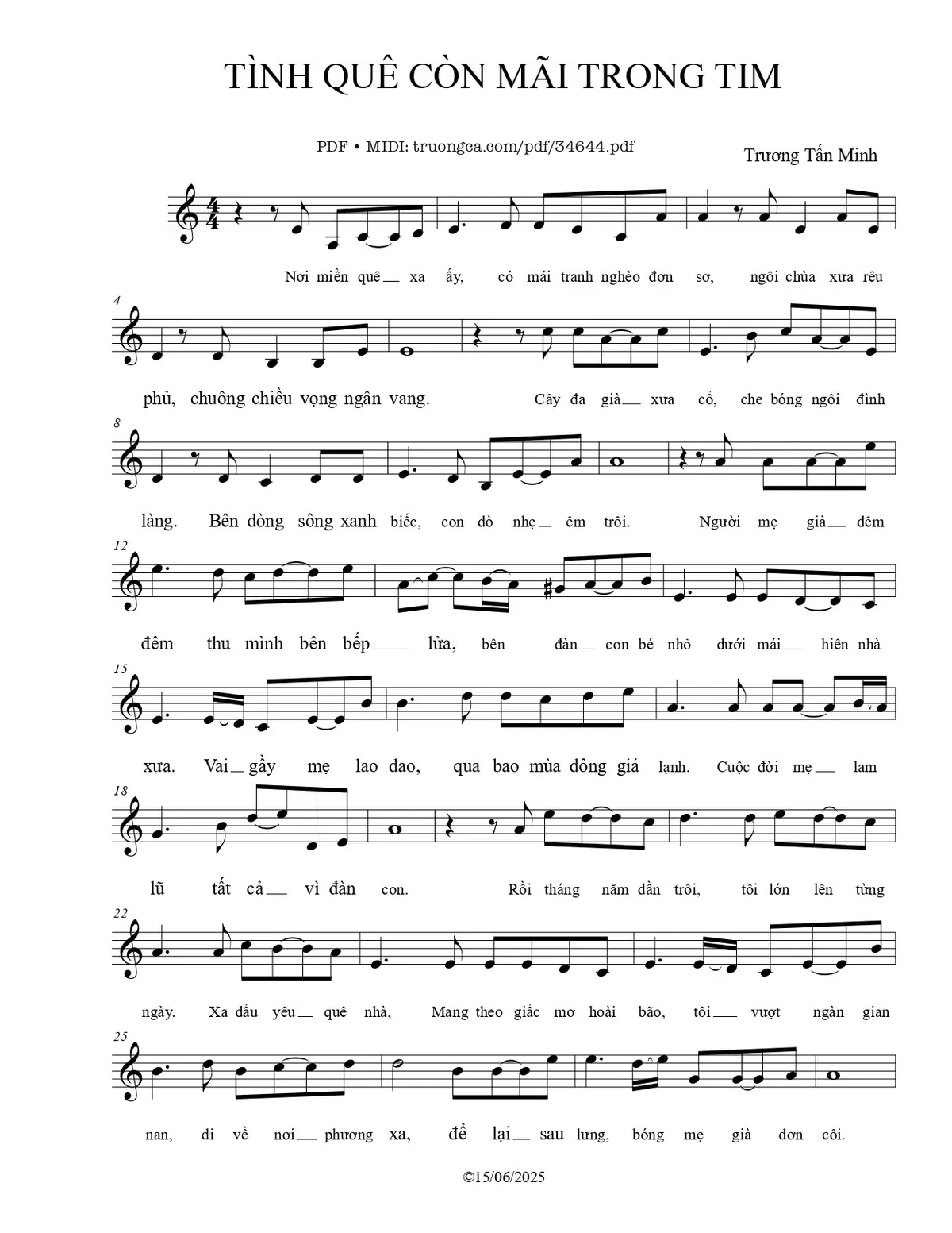 Trương Tấn Minh Nơi miền quê xa ấy có mái tranh nghèo đơn sơ [PDF] [Sheet] [Lời H.A] [Mp4/Midi]