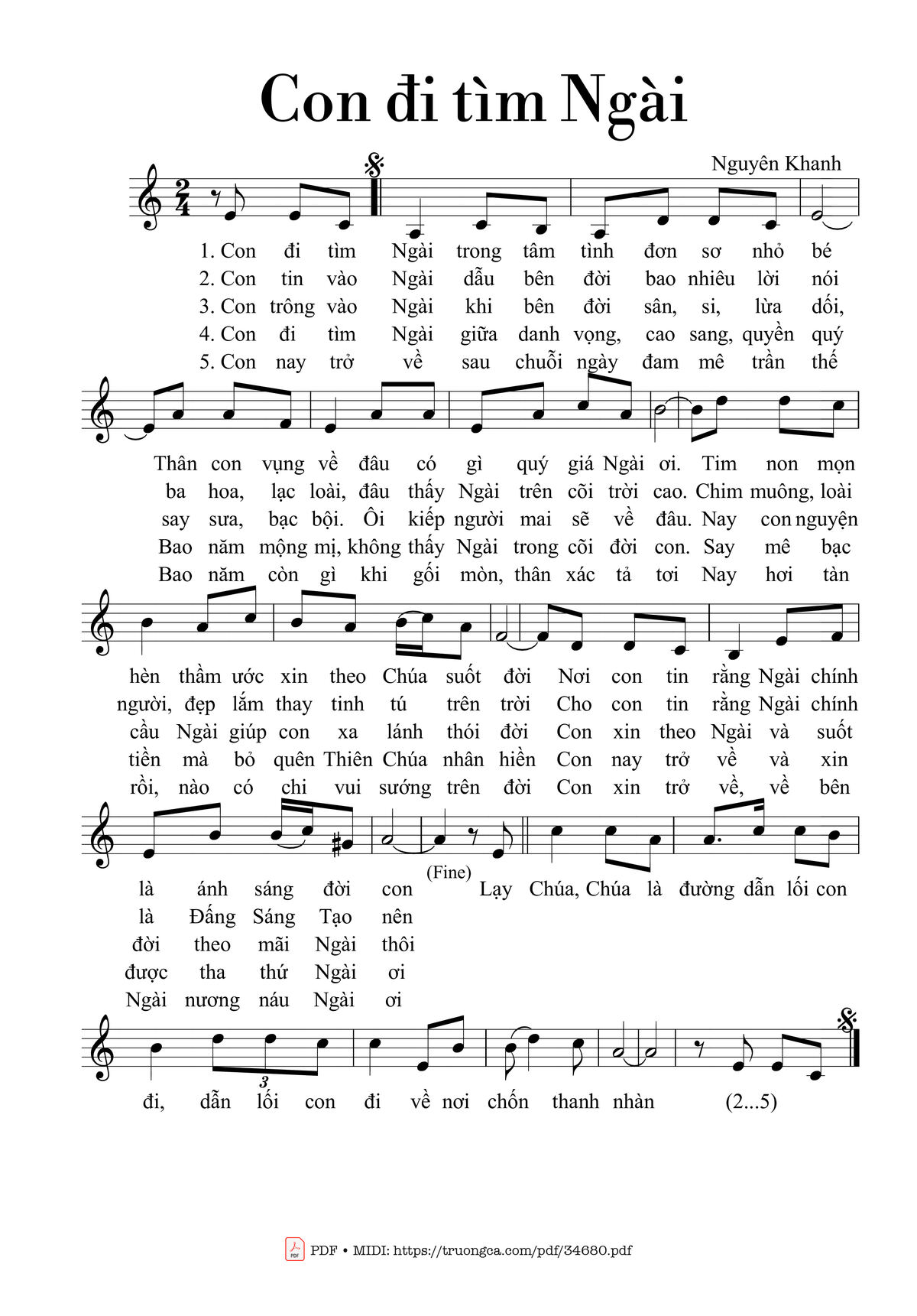 Nguyên Khanh Con đi tìm Ngài trong tâm tình đơn sơ nhỏ bé [PDF] [Sheet] [Lời H.A] [Mp4/Midi]