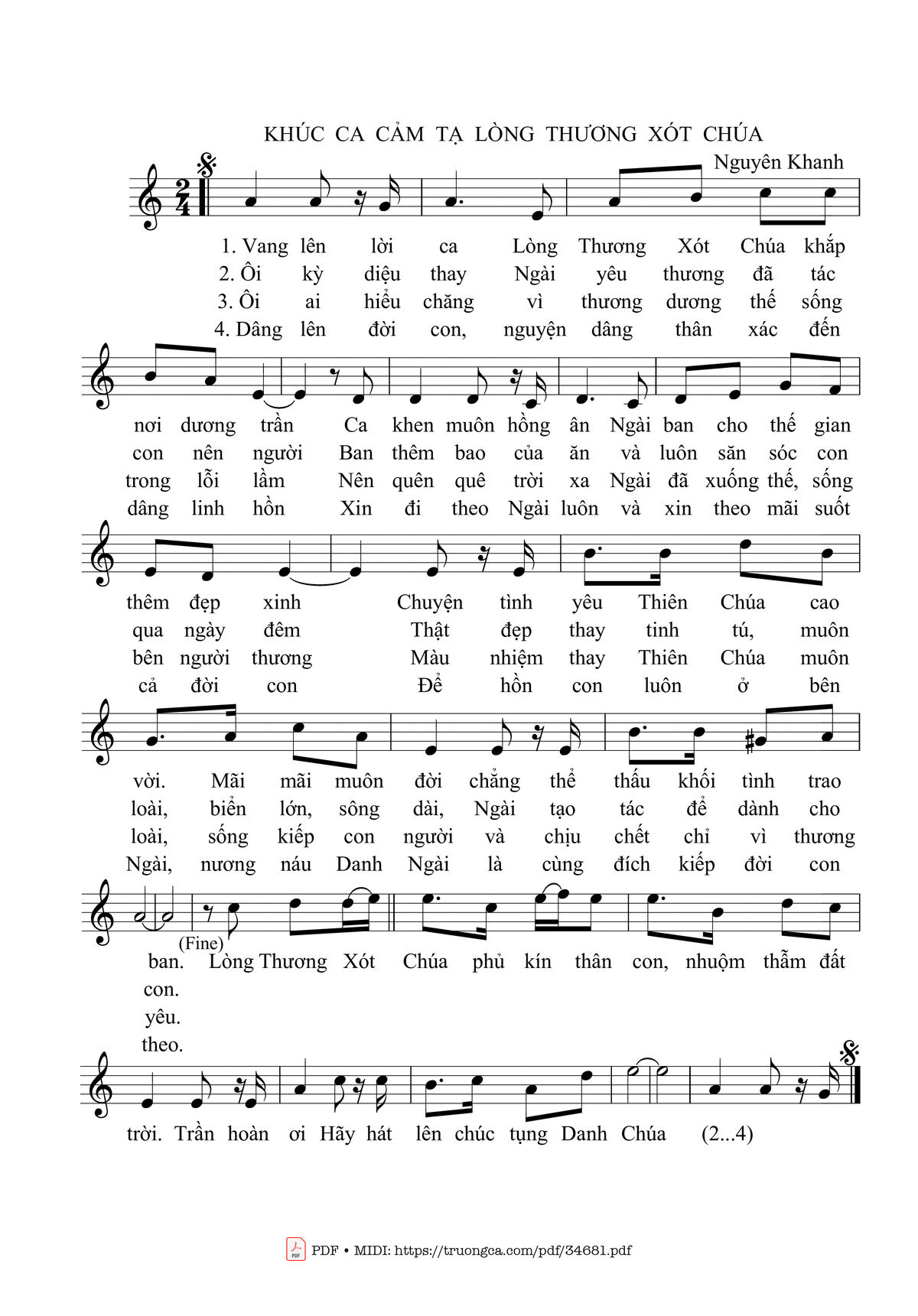 Nguyên Khanh Vang lên lời ca lòng thương xót Chúa khắp nơi dương trần [PDF] [Sheet] [Lời H.A] [Mp4/Midi]