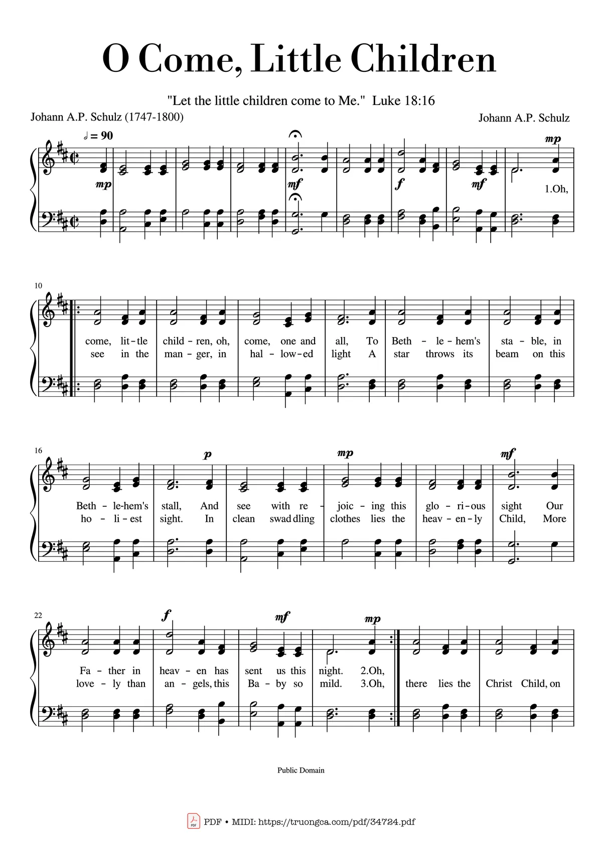 🎹 Johann A.P. Schulz O come, little children, O come, one and all, O come to the manger in Bethlehem's stall [PDF] [Sheet] [Lời H.A] [Mp4/Midi]