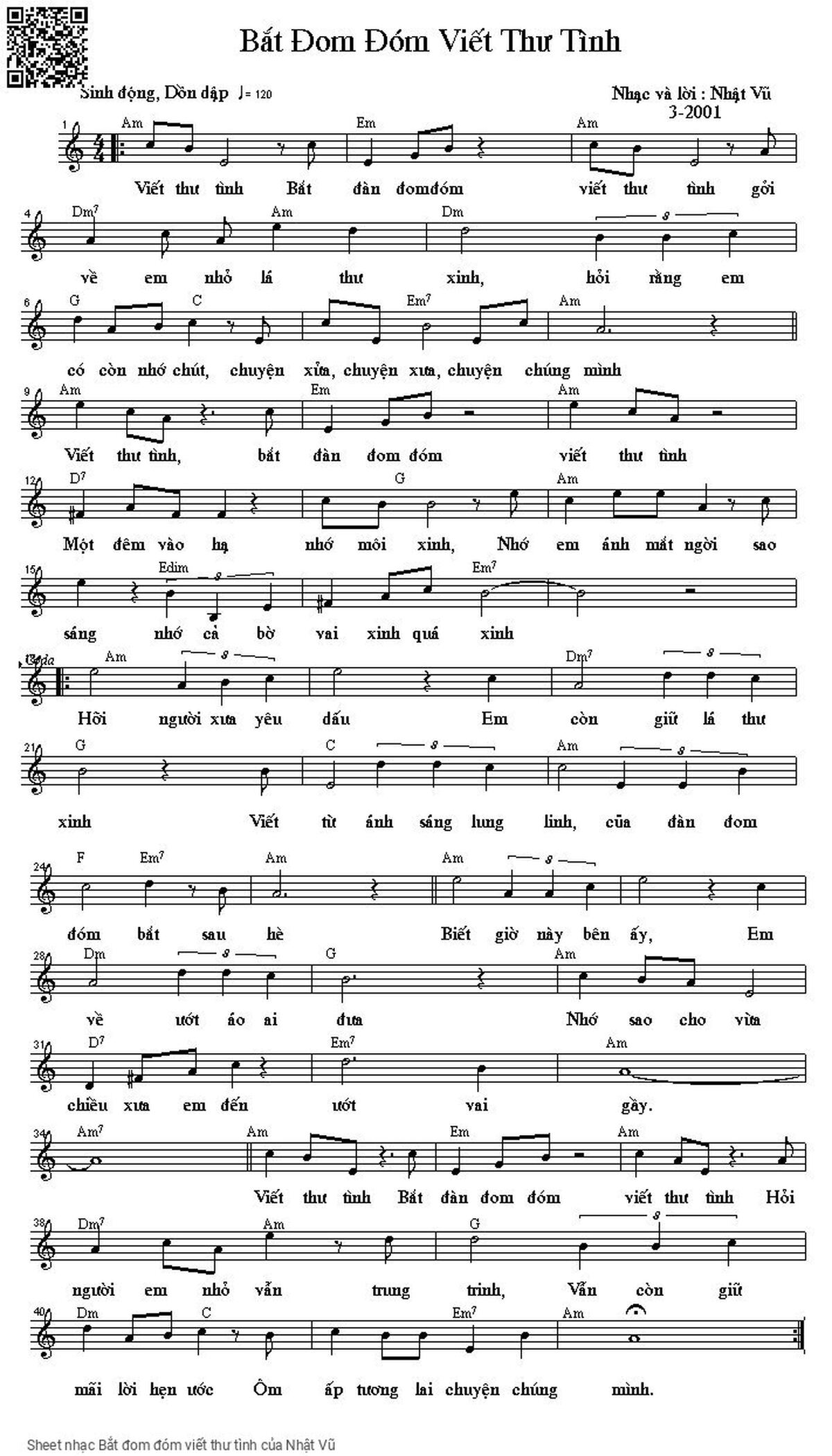 [Am] Viết thư tình hỏi [F] người em nhỏ [E7] vẫn trung [Dm] trinh