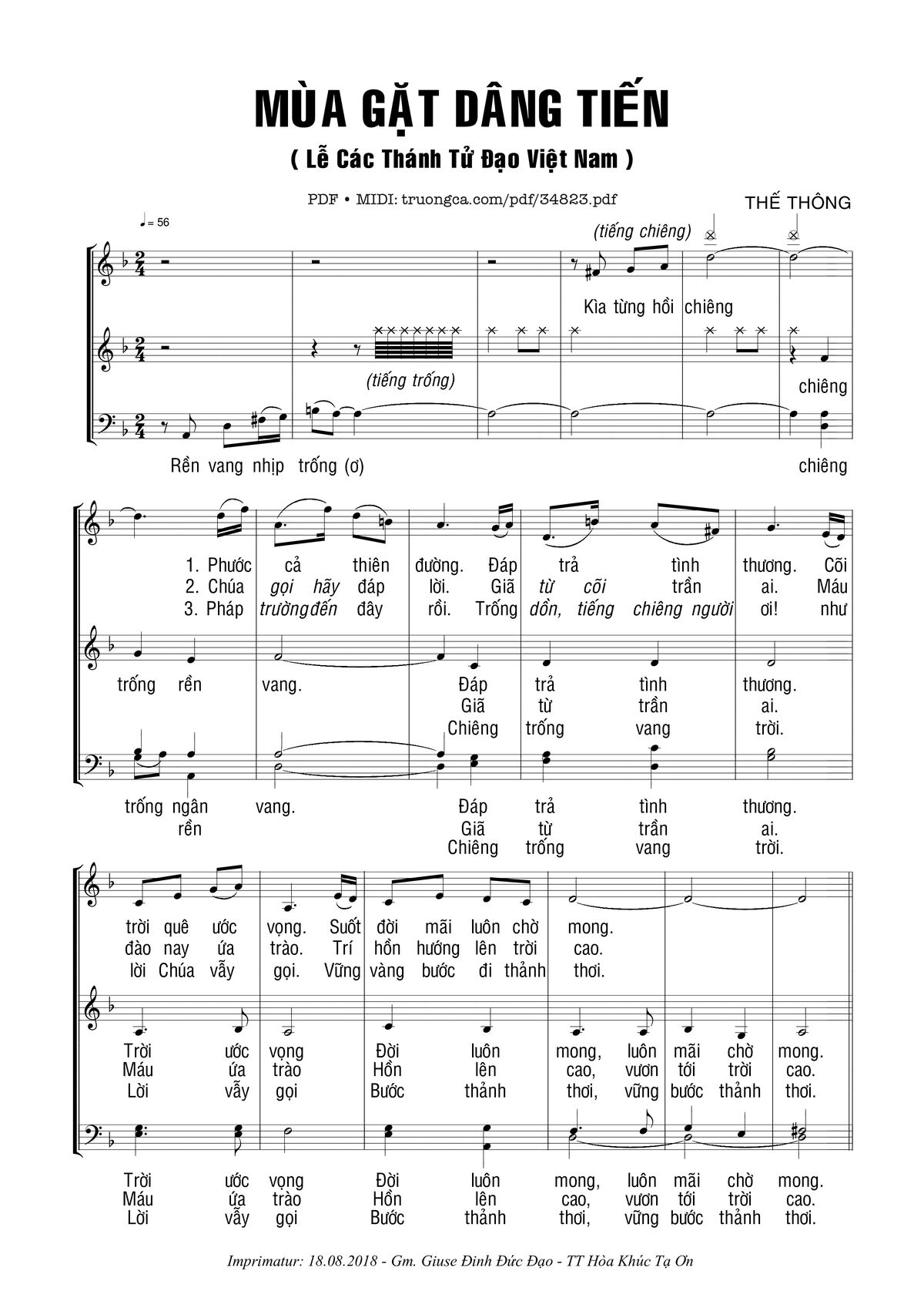 🌾 Imprimatur, Thông tin chuẩn nhận dùng trong phụng vụ Công Giáo: Dâng Lễ – Thánh Tử Đạo. Imprimatur: GP. Xuân Lộc – 18.08.2018 – GM. Giuse Đinh Đức Đạo – TT Hòa Khúc Tạ Ơn