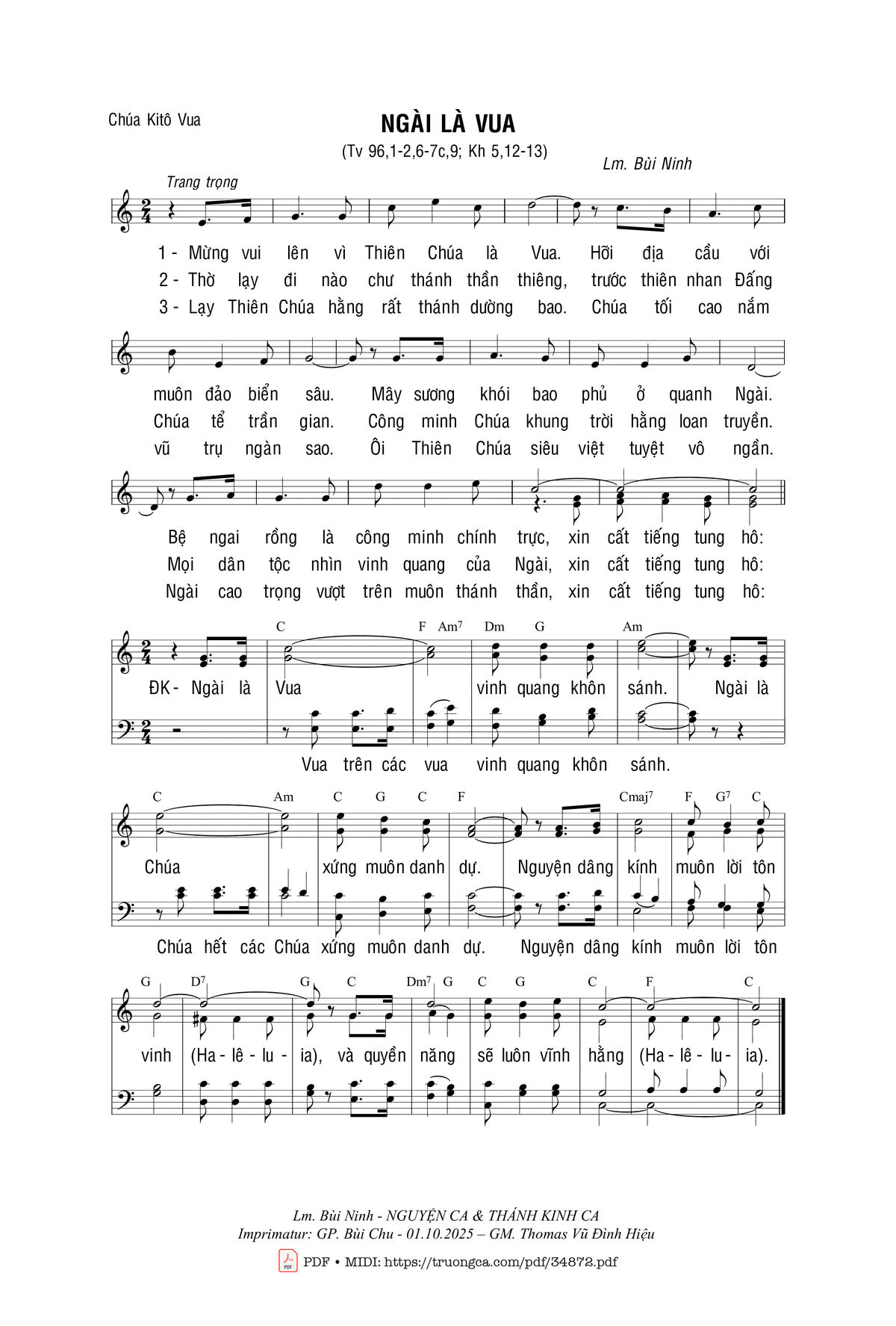 🌾 Imprimatur, Thông tin chuẩn nhận dùng trong phụng vụ Công Giáo: Ca Nguyện – Hiệp Lễ. Imprimatur: GP. Bùi Chu – 01.10.2025 – GM. Thomas Vũ Đình Hiệu – Nguyện Ca & Thánh Kinh Ca