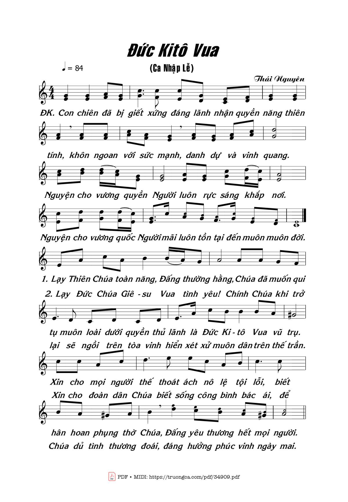 Phần nghe hát Đức Kitô Vua (Thái Nguyên) được nhúng từ Youtube, Musescore hoặc link ngoài và chịu sự kiểm soát bản quyền của bên thứ ba đó, vì vậy có thể bị xóa hoặc chèn quảng cáo bất kỳ lúc nào. Nếu bạn không nghe - xem được ca sĩ hát tức là đã bị Youtube hoặc Musescore kiểm soát.