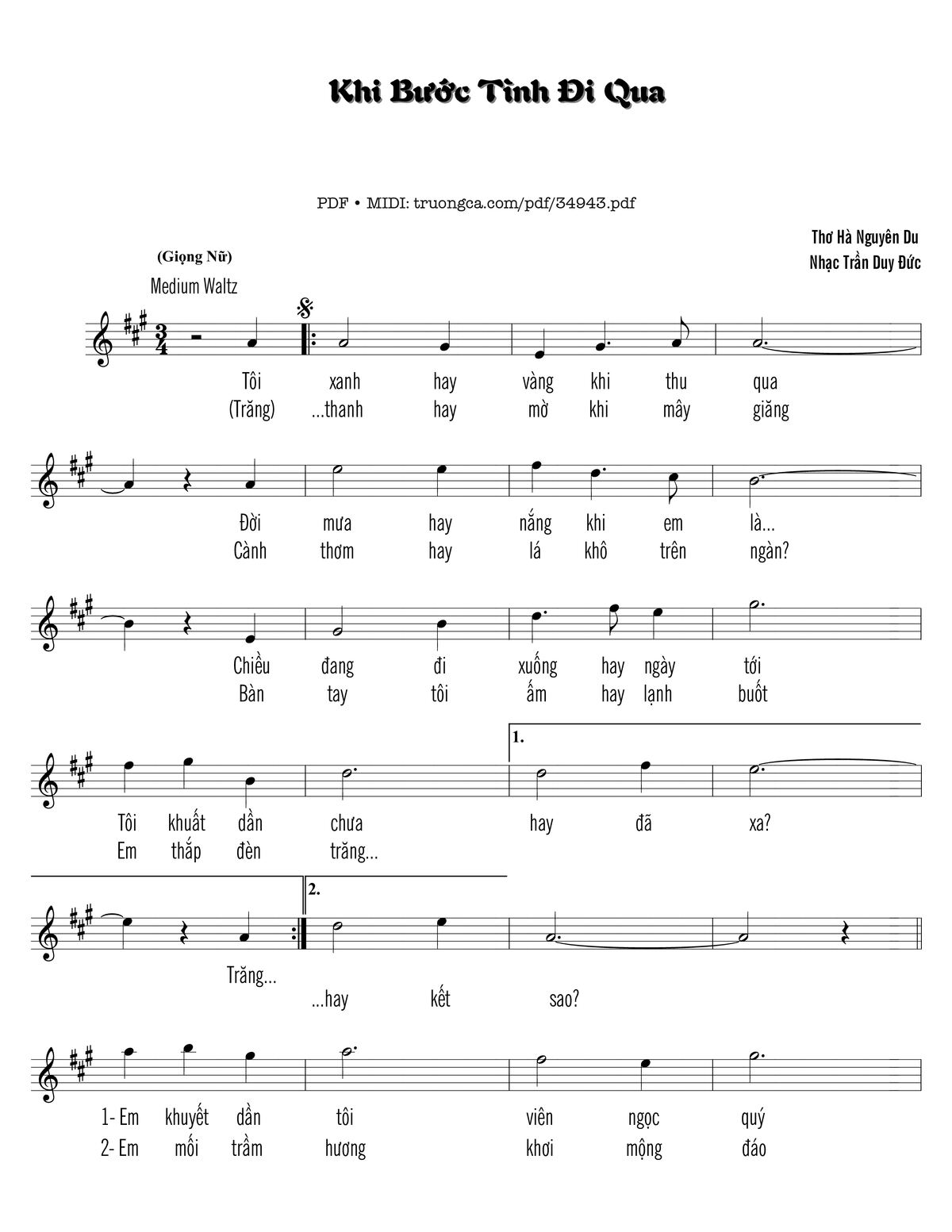 Trần Duy Đức Khi Bước Tình Đi Qua Thơ Hà Nguyên Du Nhạc Trần Duy Đức [PDF] [Sheet] [Lời H.A] [Mp4/Midi]