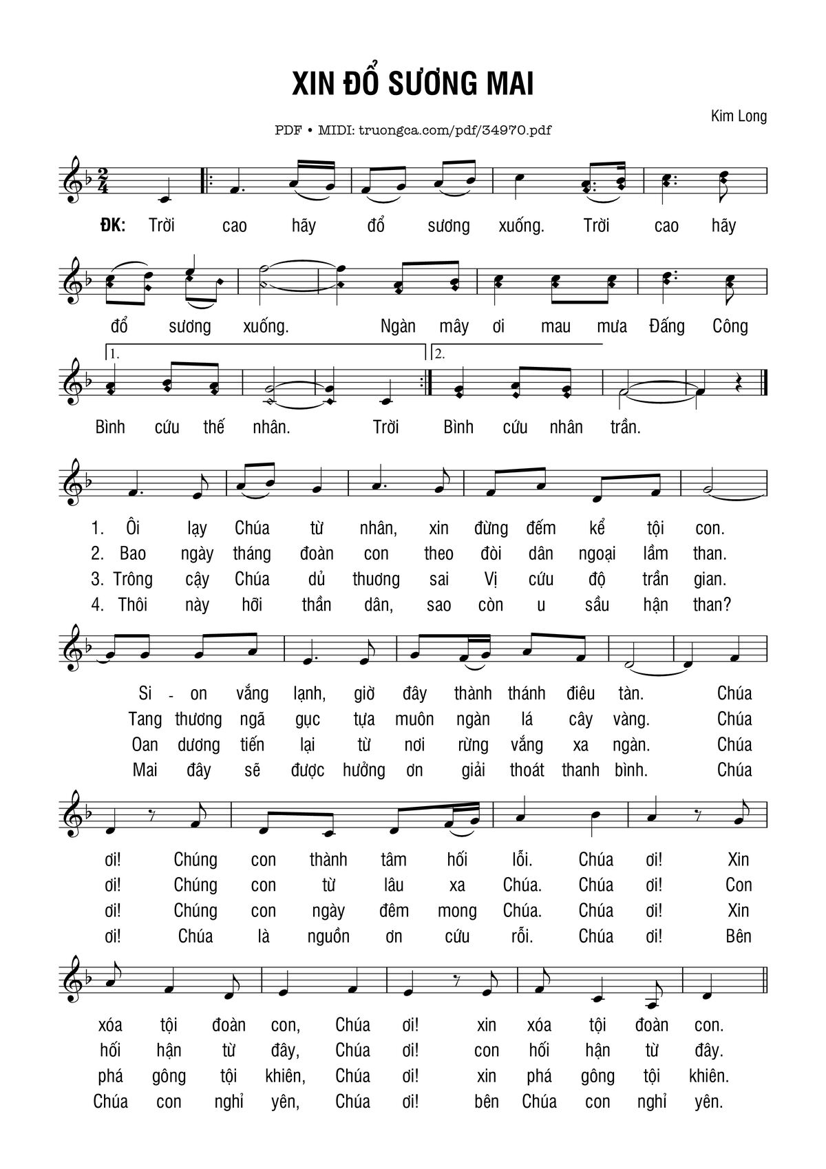 Các sheet PDF tương tự Xin Đổ Sương Mai:
