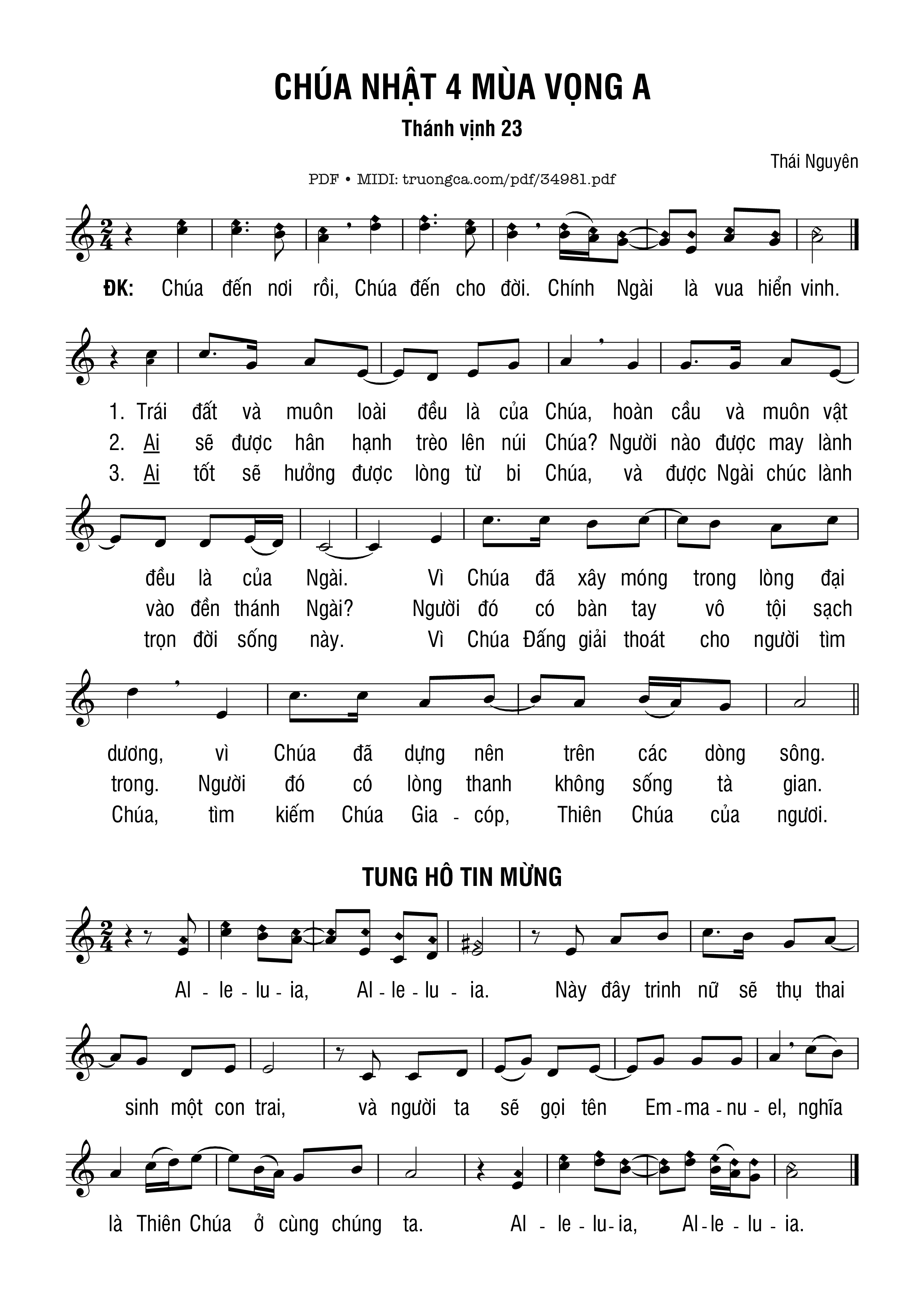 Thái Nguyên Chúa đến nơi rồi Chúa đến cho đời Chính Ngài là vua hiển vinh [PDF] [Sheet] [Lời H.A] [Mp4/Midi]