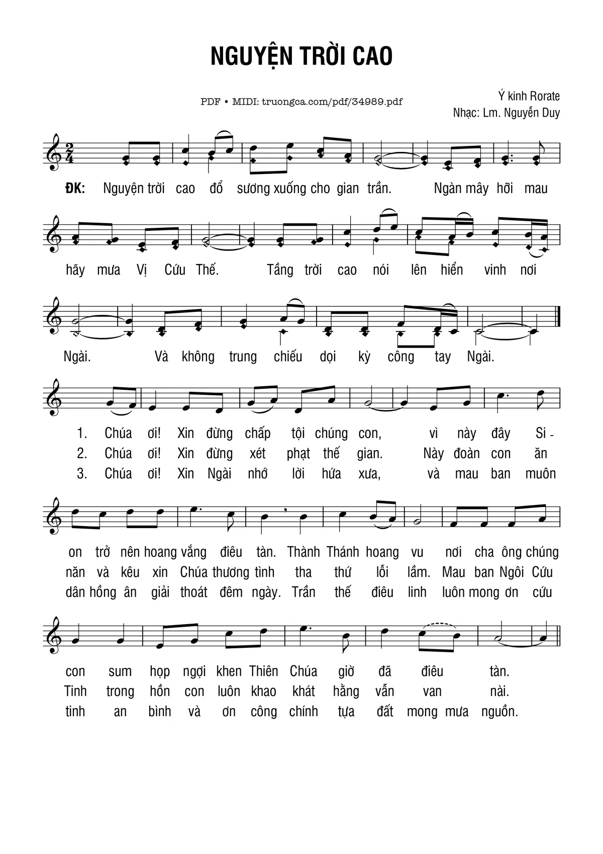 Nguyễn Duy Nguyện trời cao đổ sương xuống cho gian trần [PDF] [Sheet] [Lời H.A] [Mp4/Midi]
