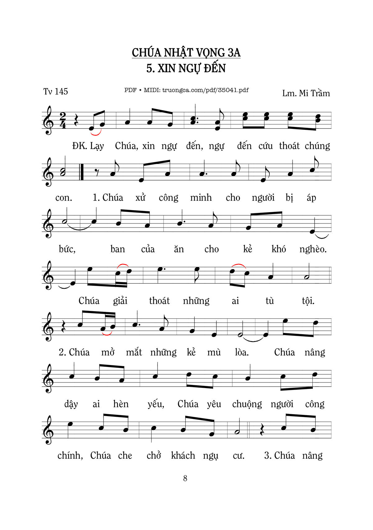 Mi Trầm Lạy Chúa xin ngự đến ngự đến cứu thoát chúng con [PDF] [Sheet] [Lời H.A] [Mp4/Midi]