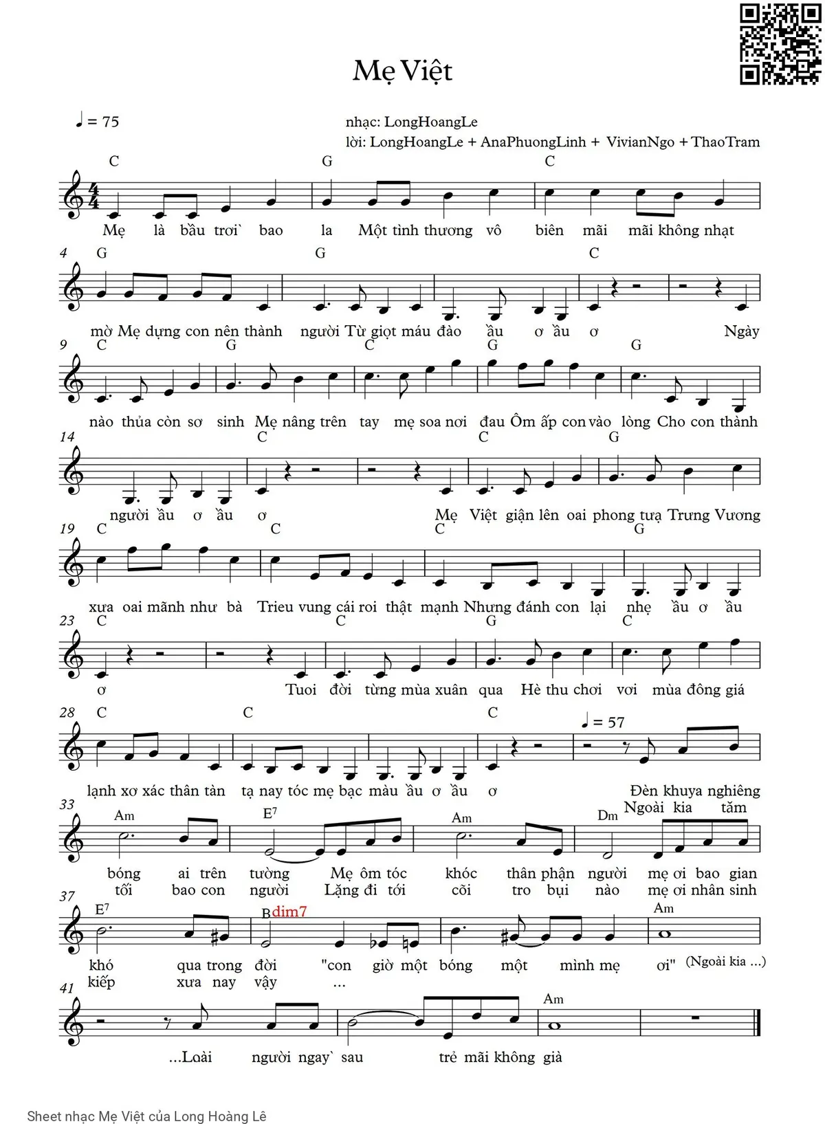 Long Hoàng Lê Mẹ là bầu trời bao la Một tình thương vô biên mãi mãi không nhạt mờ [PDF] [Sheet] [Lời H.A] [Mp4/Midi]