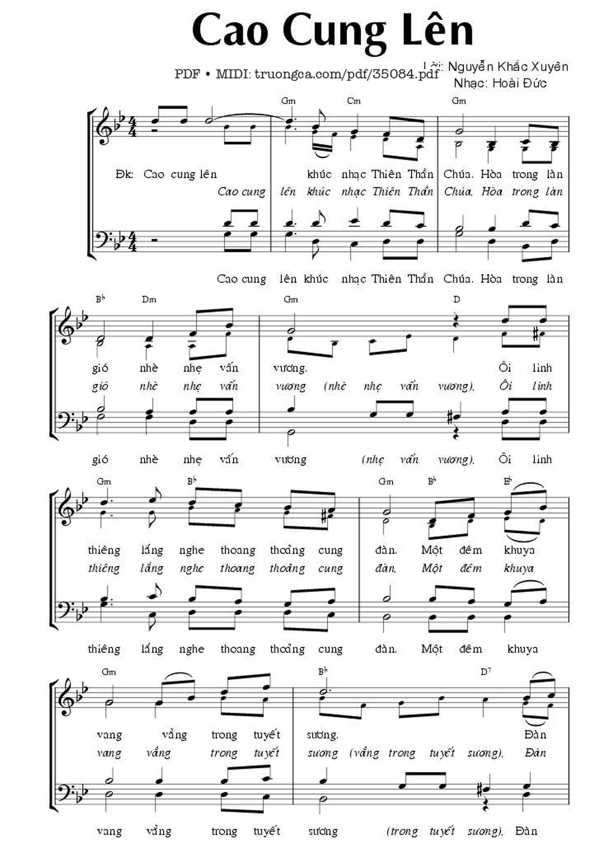 Câu đầu: Cao cung lên khúc nhạc thiên thần Chúa Hòa trong làn gió nhè nhẹ vấn vương