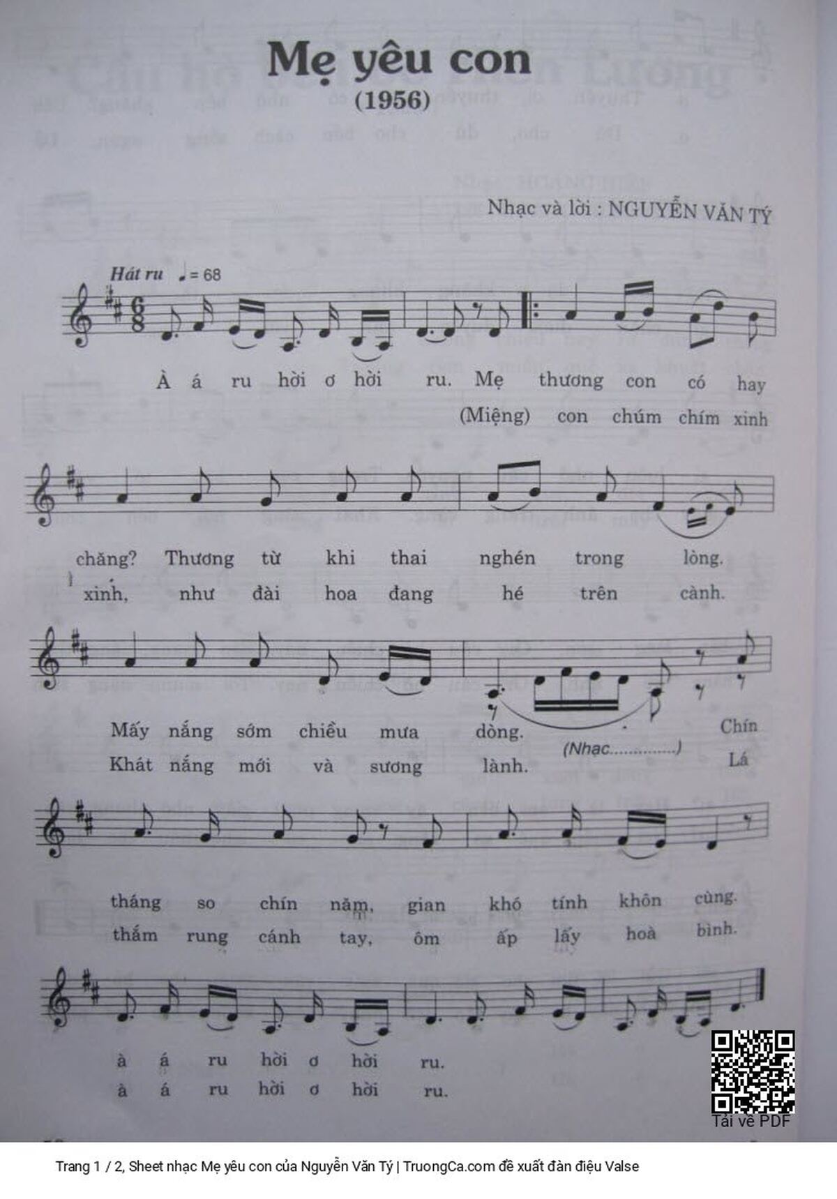 Nguyễn Văn Tý A á ru hời ơ hời ru Mẹ thương con có hay chăng [PDF] [Sheet] [Lời H.A] [Mp4/Midi]