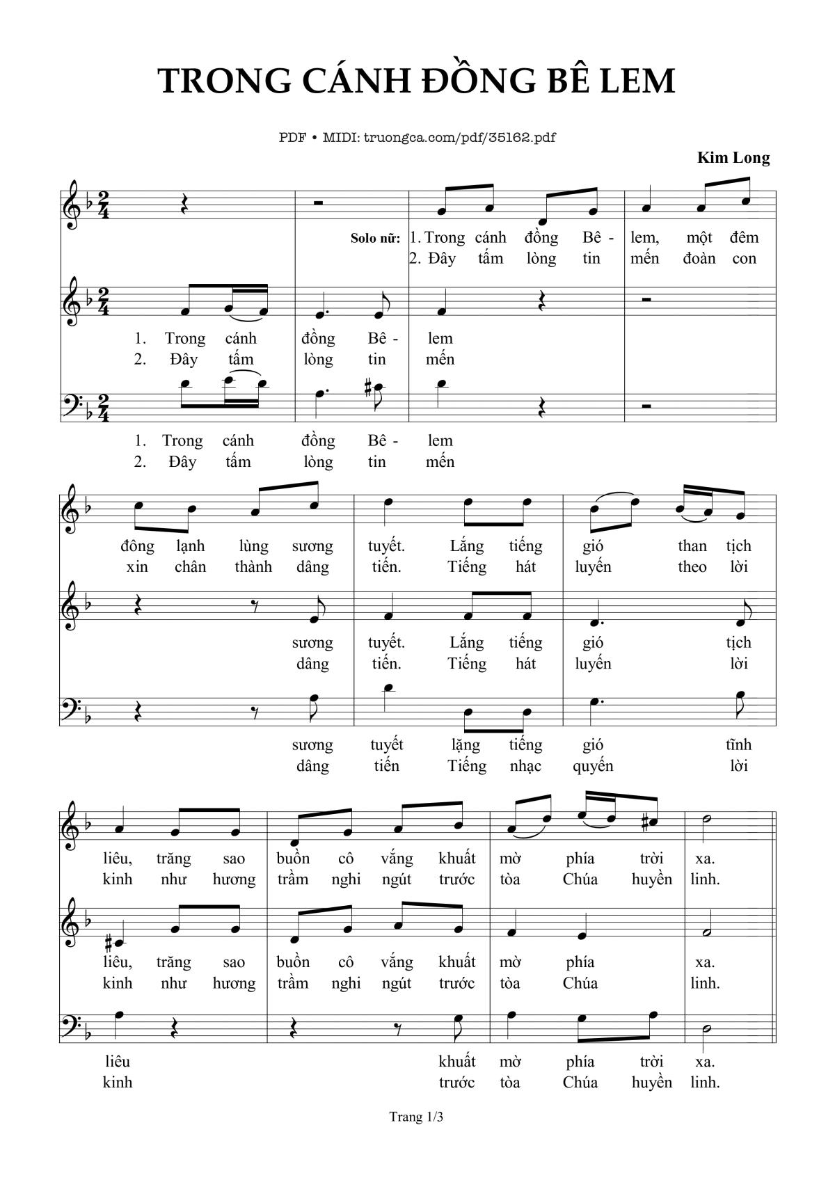 Kim Long Trong cánh đồng Bê lem một đêm đông lạnh sương tuyết [PDF] [Sheet] [Lời H.A] [Mp4/Midi]