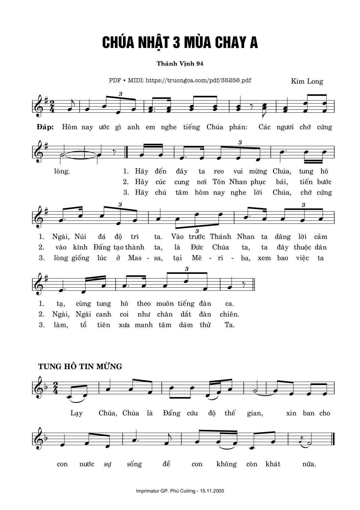 Các sheet PDF cùng tên Thánh Vịnh 94, Chúa Nhật 3A Mùa Chay:
