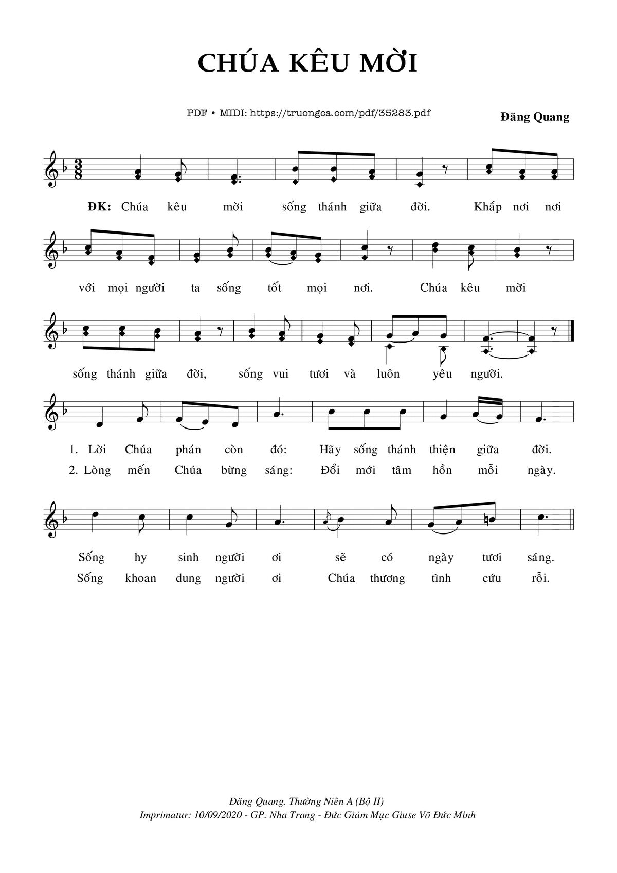 Các sheet PDF cùng tên Chúa Kêu Mời: