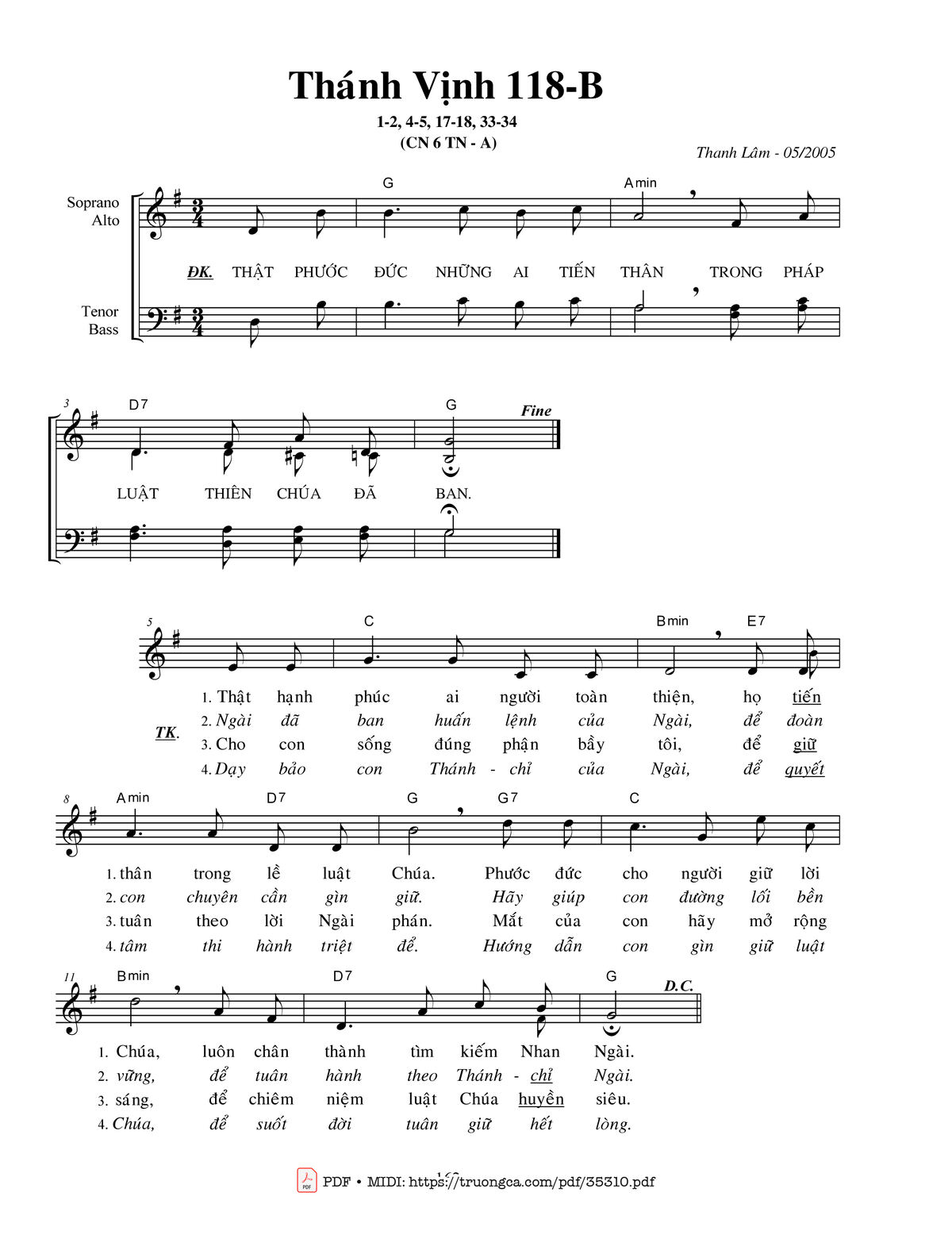 Thanh Lâm Thật phước đức những ai tiến thân trong pháp luật Thiên Chúa đã ban [PDF] [Sheet] [Lời H.A] [Mp4/Midi]
