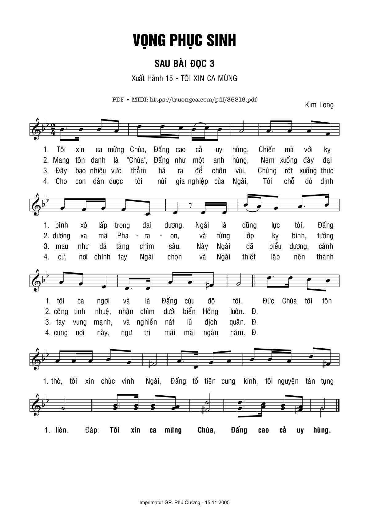 Kim Long Tôi xin ca mừng Chúa Đấng cao cả uy hùng [PDF] [Sheet] [Lời H.A] [Mp4/Midi]