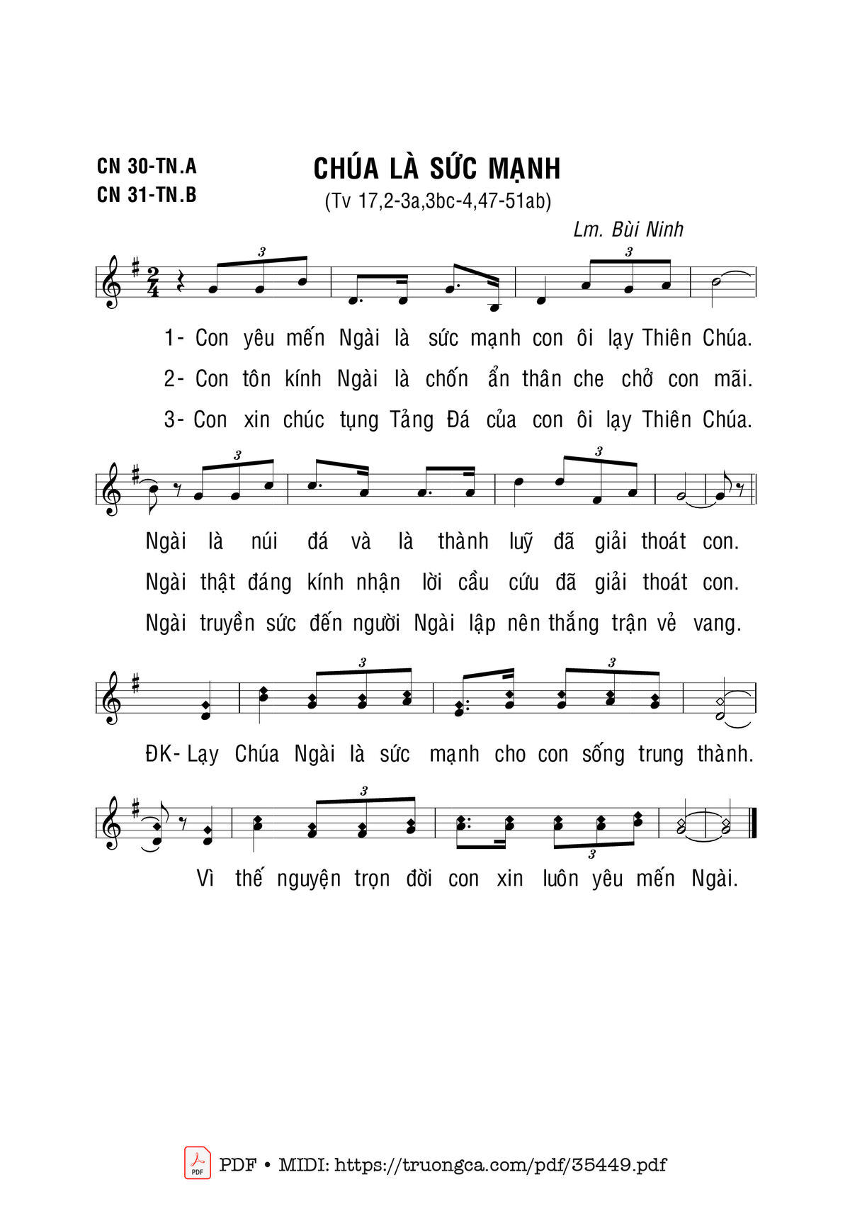 Phần nghe hát Thánh Vịnh 17, Chúa Là Sức Mạnh (Bùi Ninh) được nhúng từ Youtube, Musescore hoặc link ngoài và chịu sự kiểm soát bản quyền của bên thứ ba đó, vì vậy có thể bị xóa hoặc chèn quảng cáo bất kỳ lúc nào. Nếu bạn không nghe - xem được ca sĩ hát tức là đã bị Youtube hoặc Musescore kiểm soát.