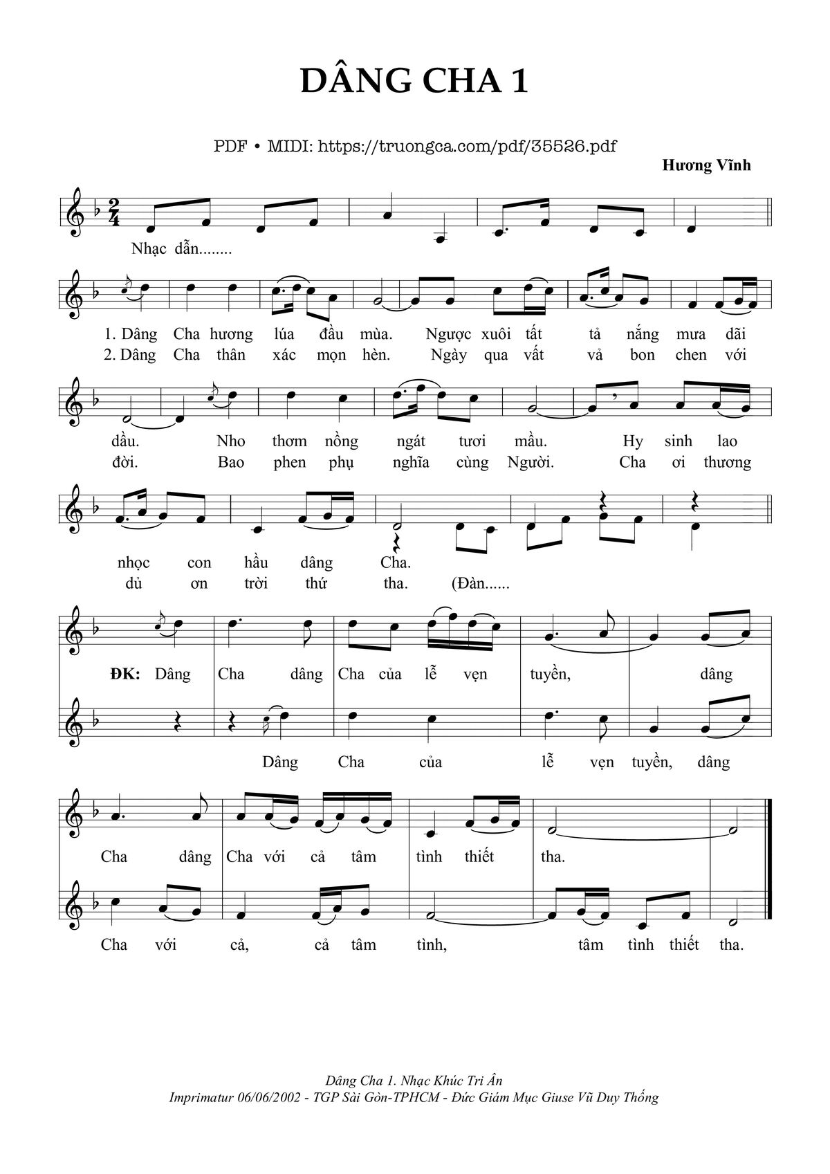 Hương Vĩnh Dâng Cha hương lúa đầu mùa ngược xuôi tất tả nắng mưa dãi dầu [PDF] [Sheet] [Lời H.A] [Mp4/Midi]