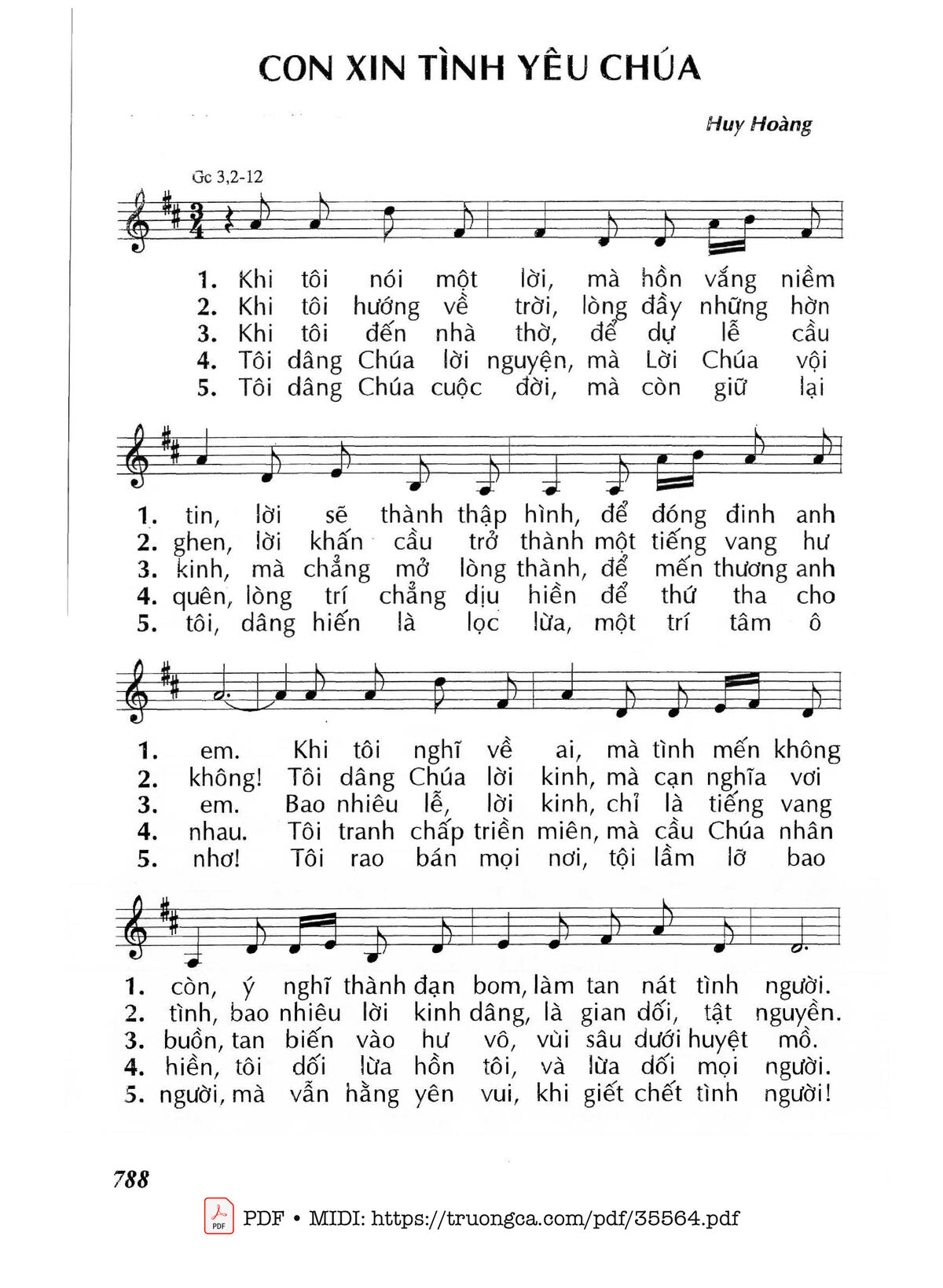 1. Khi tôi nói một lời, mà hồn vắng niềm tin, lời sẽ thành thập hình, để đóng đinh anh em. Khi tôi nghĩ về ai, mà tình mến không còn, ý nghĩ thành đạn bom, làm tan nát tình người.