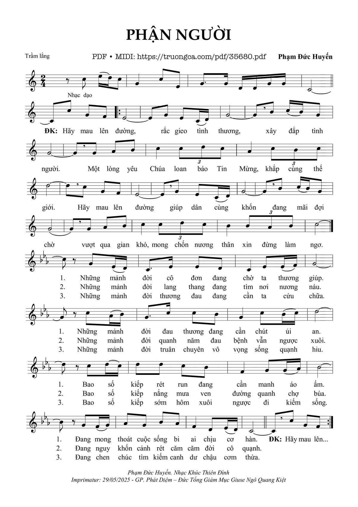 Phạm Đức Huyến Hãy mau lên đường rắc gieo tình thương [PDF] [Sheet] [Lời H.A] [Mp4/Midi]