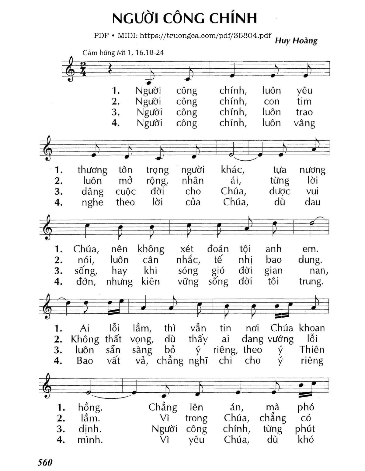 1. Người công chính, luôn yêu thương tôn trọng người khác, tựa nương Chúa, nên không xét đoán tội anh em. Ai lỗi lầm, thì vẫn tin nơi Chúa khoan hồng. Chẳng lên án, mà phó dâng cho tình Chúa thương.