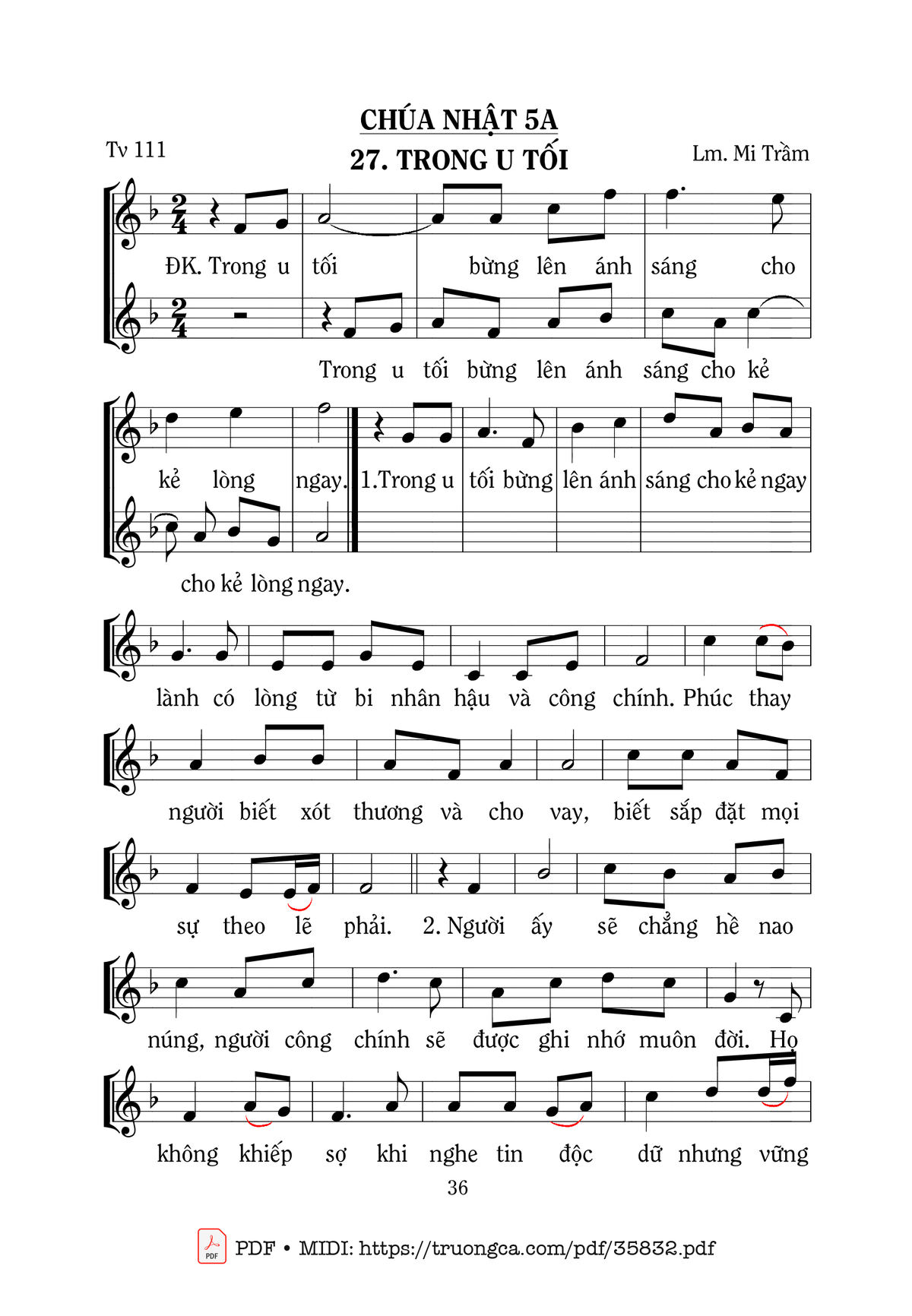 Mi Trầm Ca Chúa Nhật A Thường Niên Trong u tối bừng lên ánh sáng cho kẻ lòng ngay [PDF] [Sheet] [Lời H.A] [Mp4/Midi]