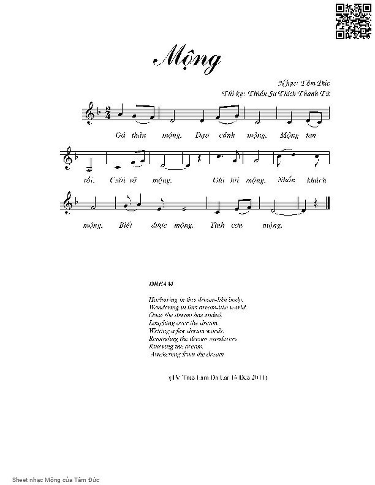 Tâm Đức Gá thân mộng Dạo cảnh mộng Mộng tan rồi [PDF] [Sheet] [Lời H.A] [Mp4/Midi]