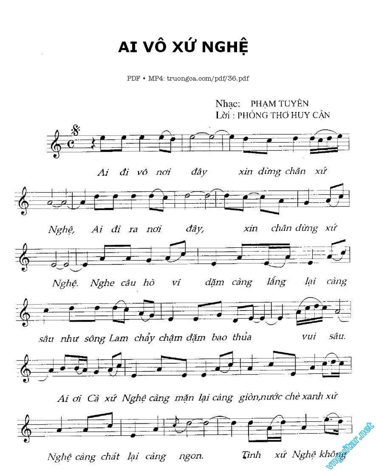 Phạm Tuyên Ai đi vô nơi đây xin dừng chân xứ Nghệ [PDF] [Sheet] [Lời H.A] [Mp4/Midi]