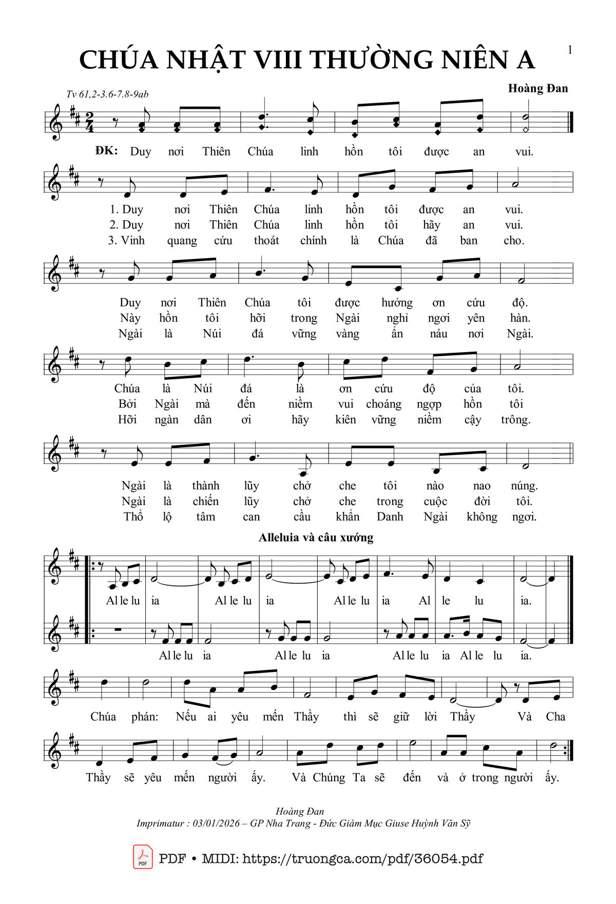 Các sheet PDF tương tự Chúa Nhật 8 Thường Niên A (Tv 61):