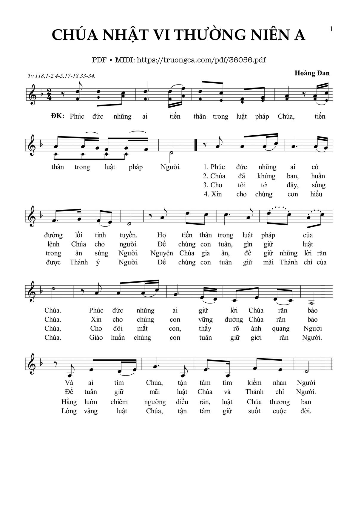 1. Phúc đức những ai có đường lối tinh tuyền. Họ tiến thân trong luật pháp của Chúa. Phúc đức những ai giữ Lời Chúa răn bảo. Và ai tìm Chúa, tận tâm tìm kiếm nhan Người.