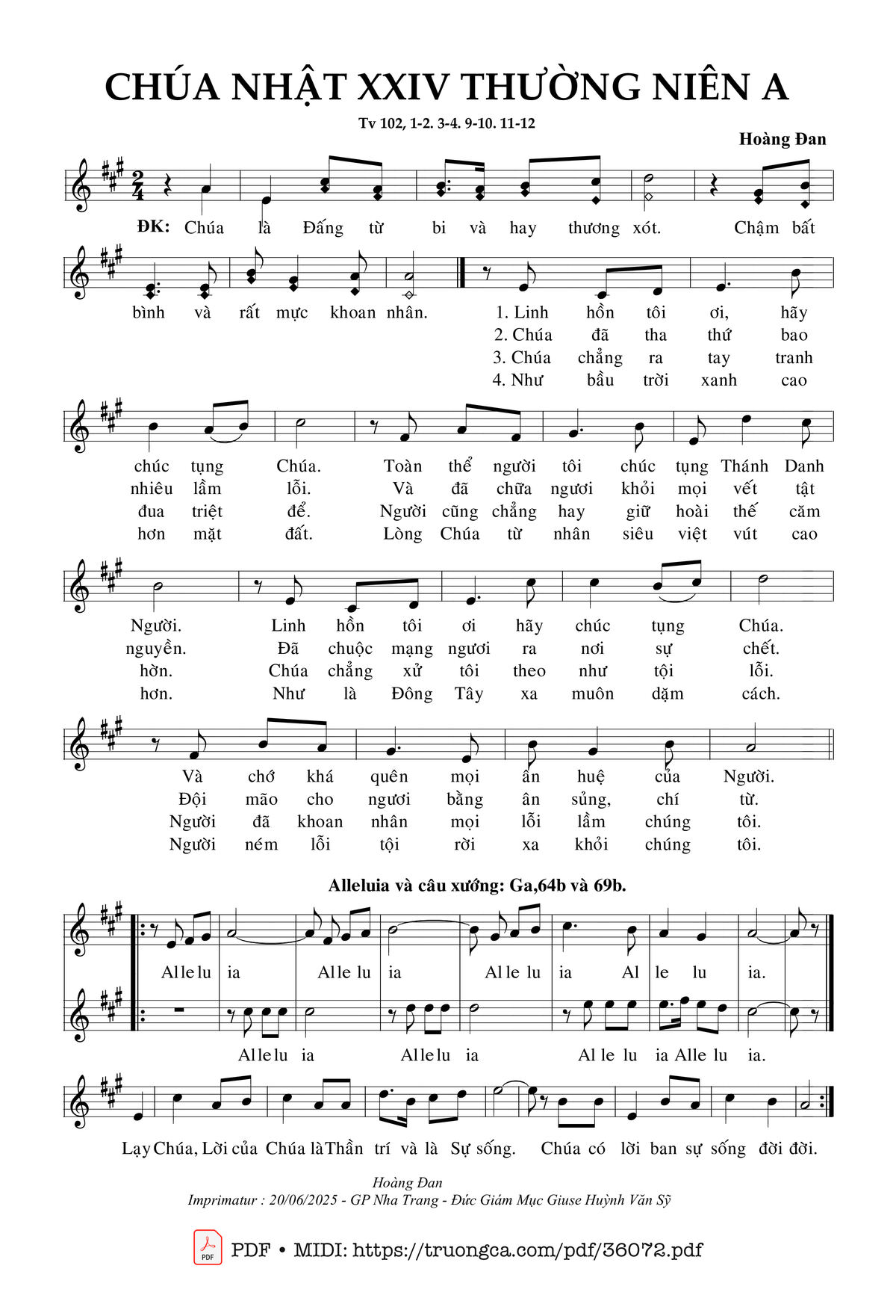 Các sheet PDF tương tự Chúa Nhật 24 Thường Niên A (Tv 102):